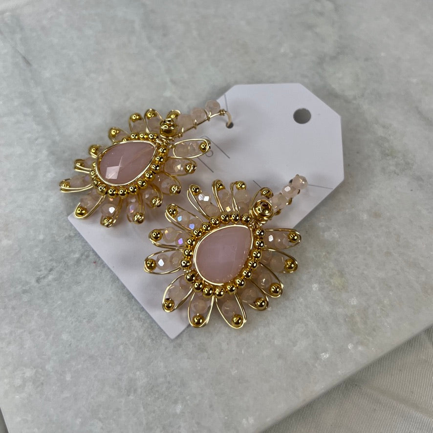 Aretes Artesanales Mexicanos de Cristal y Borla de Hilo