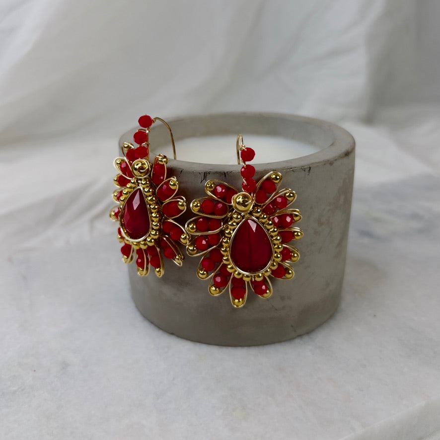 Aretes Artesanales Mexicanos de Cristal y Borla de Hilo
