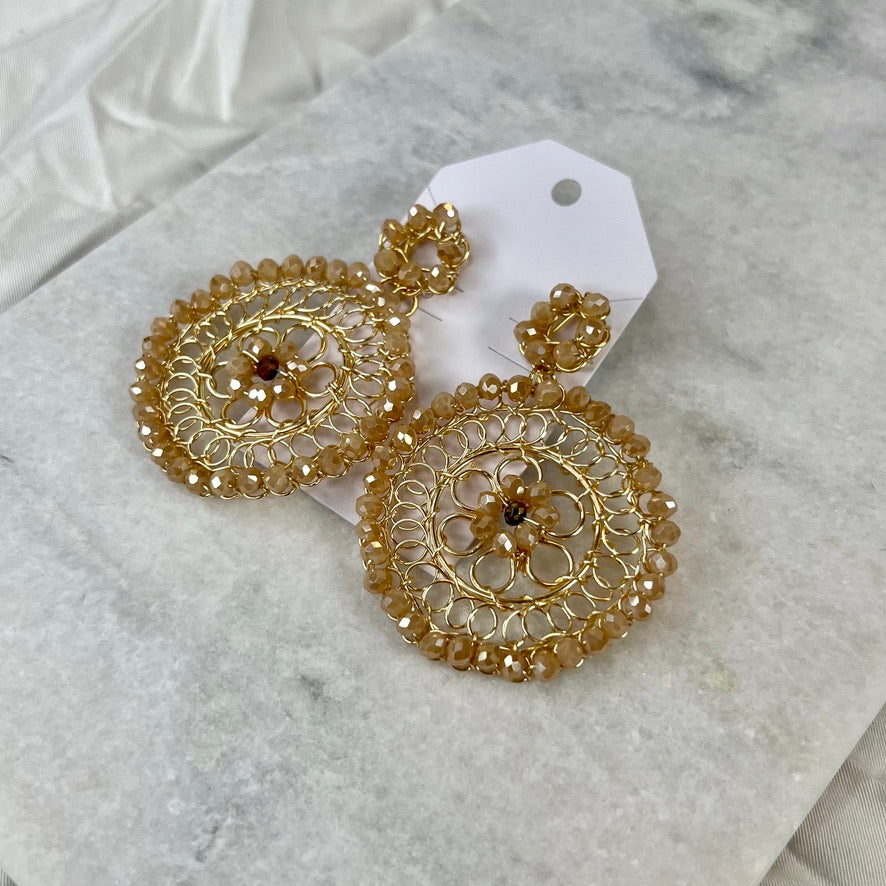 Aretes Artesanales Mexicanos de Cristal y Borla de Hilo