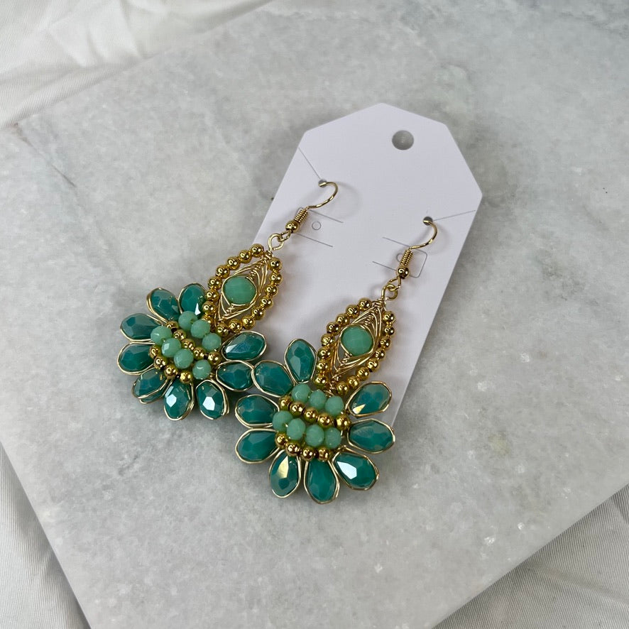 Aretes Artesanales Mexicanos de Cristal y Borla de Hilo