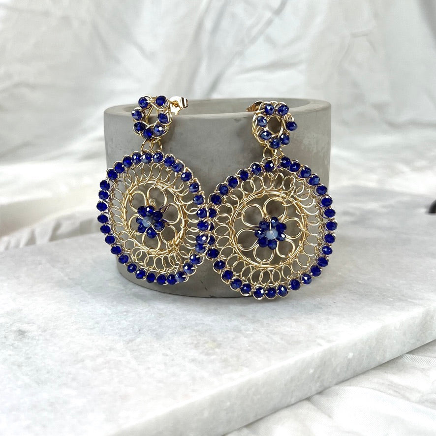 Aretes Artesanales Mexicanos de Cristal y Borla de Hilo