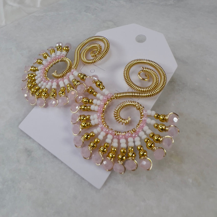 Aretes Artesanales Mexicanos de Cristal y Borla de Hilo