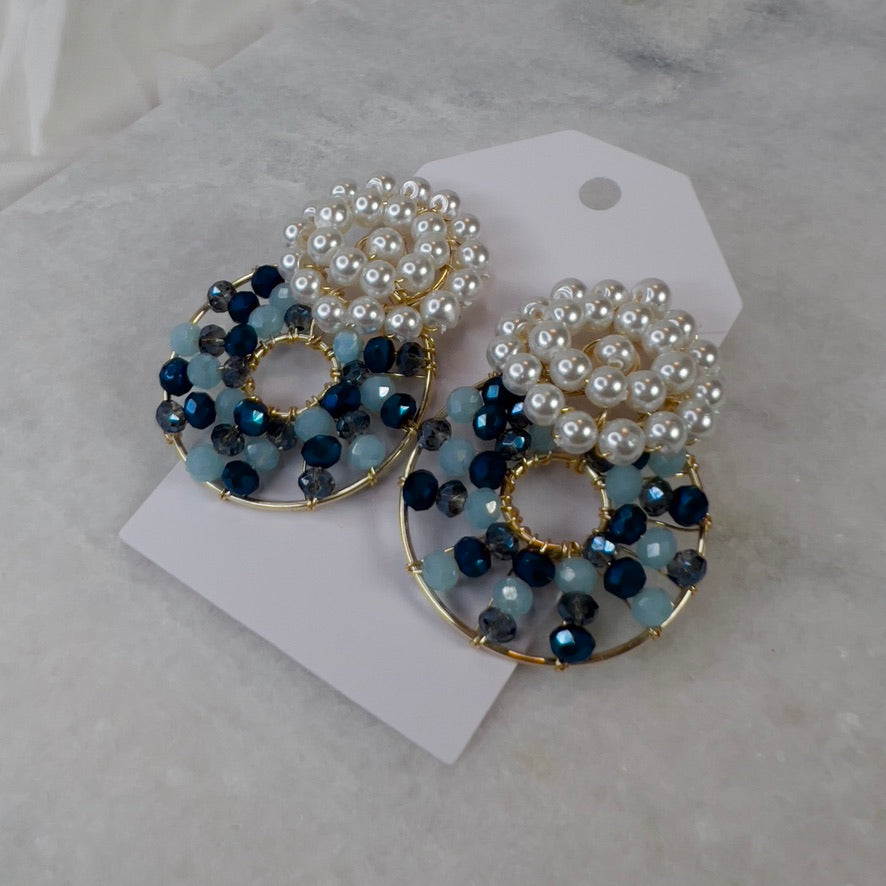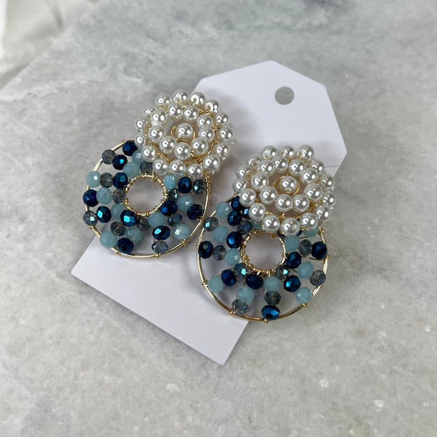 Aretes Artesanales Mexicanos de Cristal y Borla de Hilo