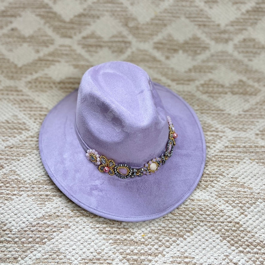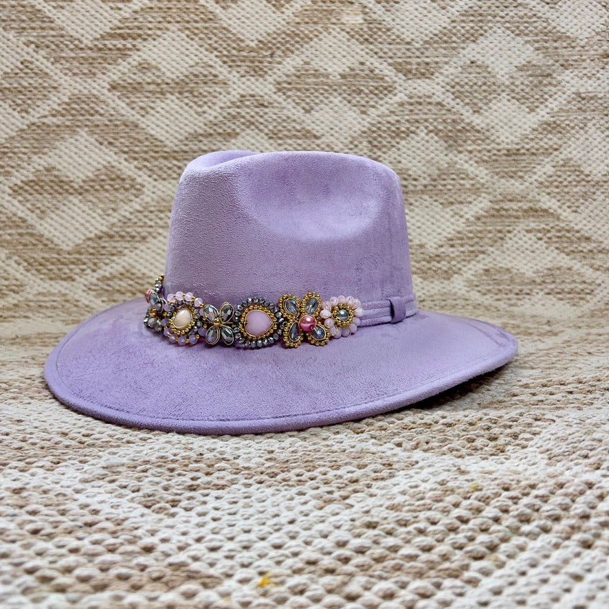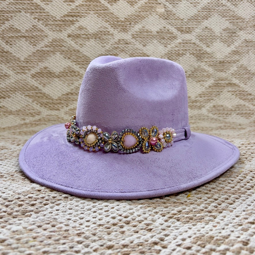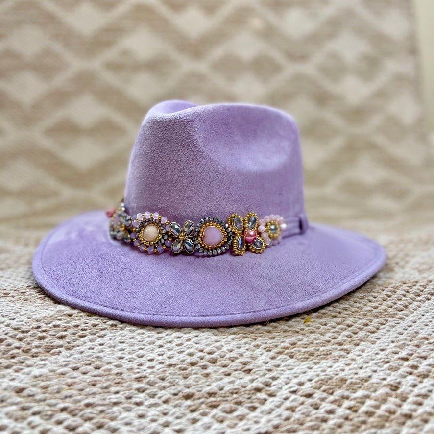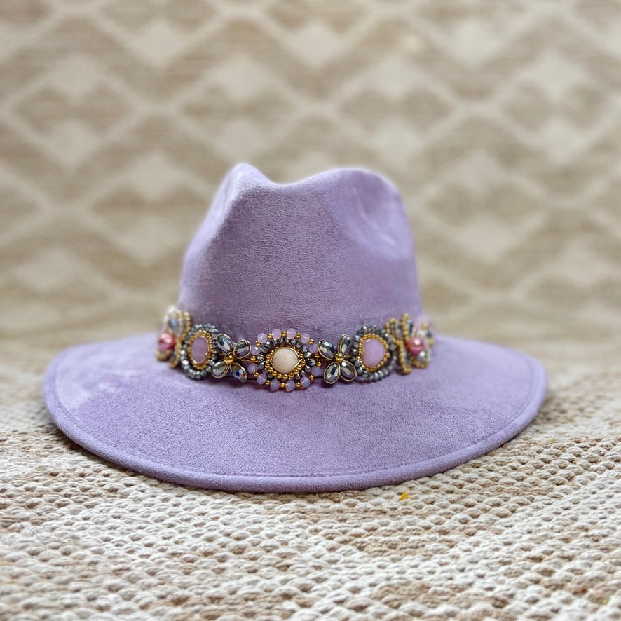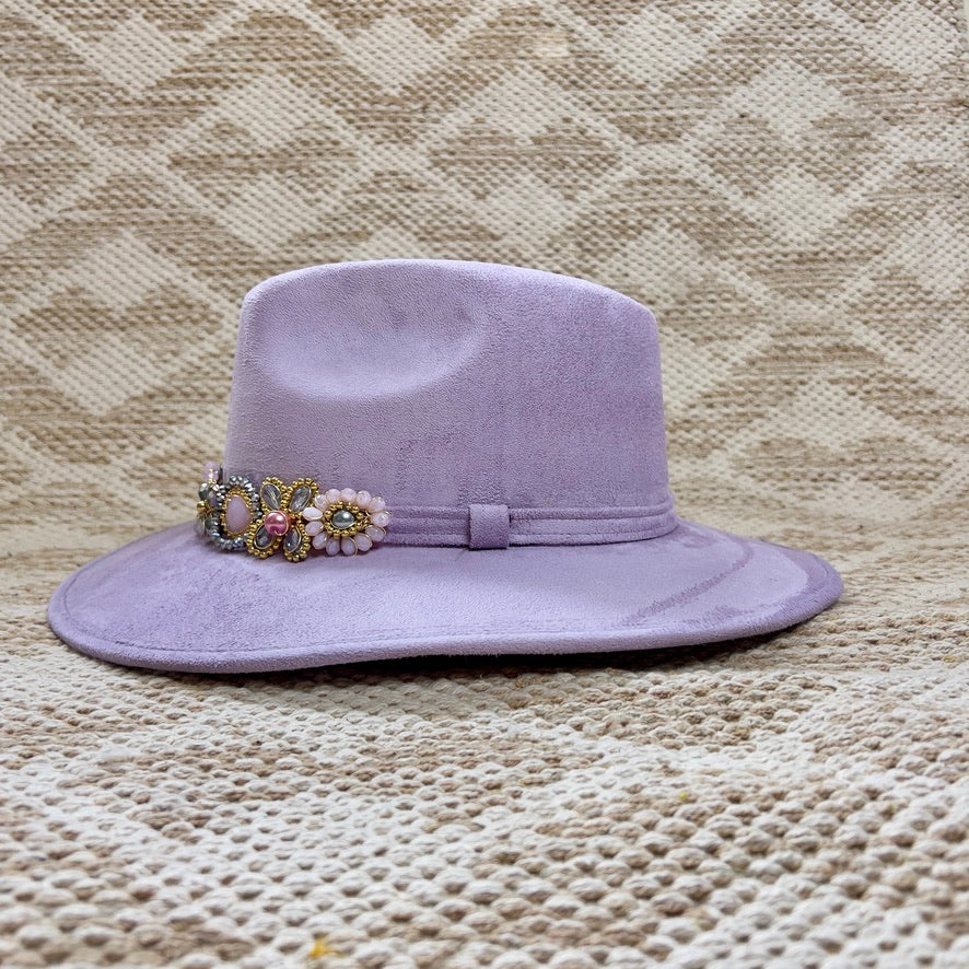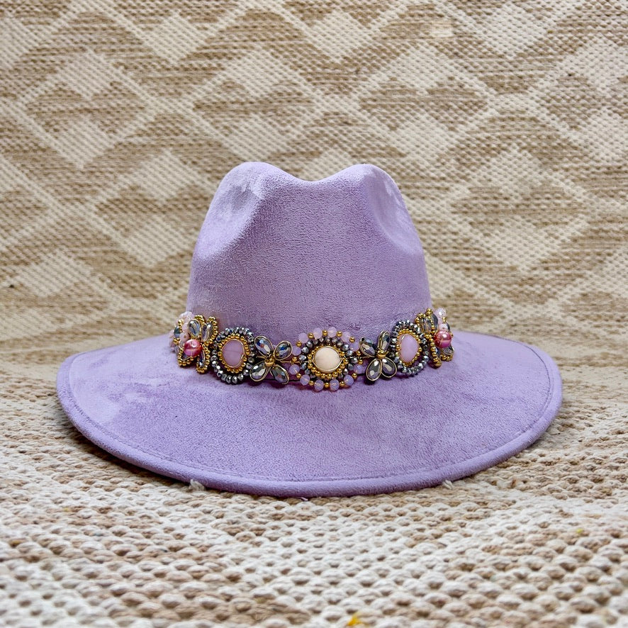Our Sombreros de gamusa come in multiple colors, with traditional gemstone/crystal beaded multi-colored flower design.