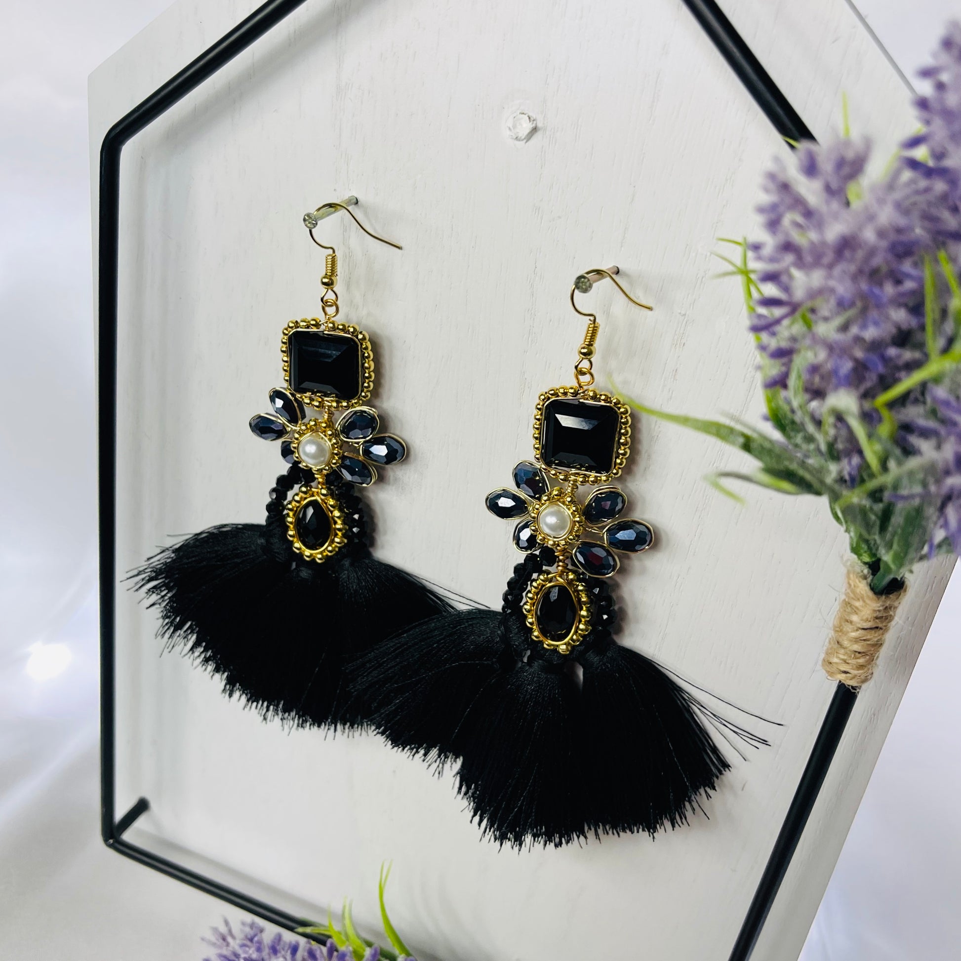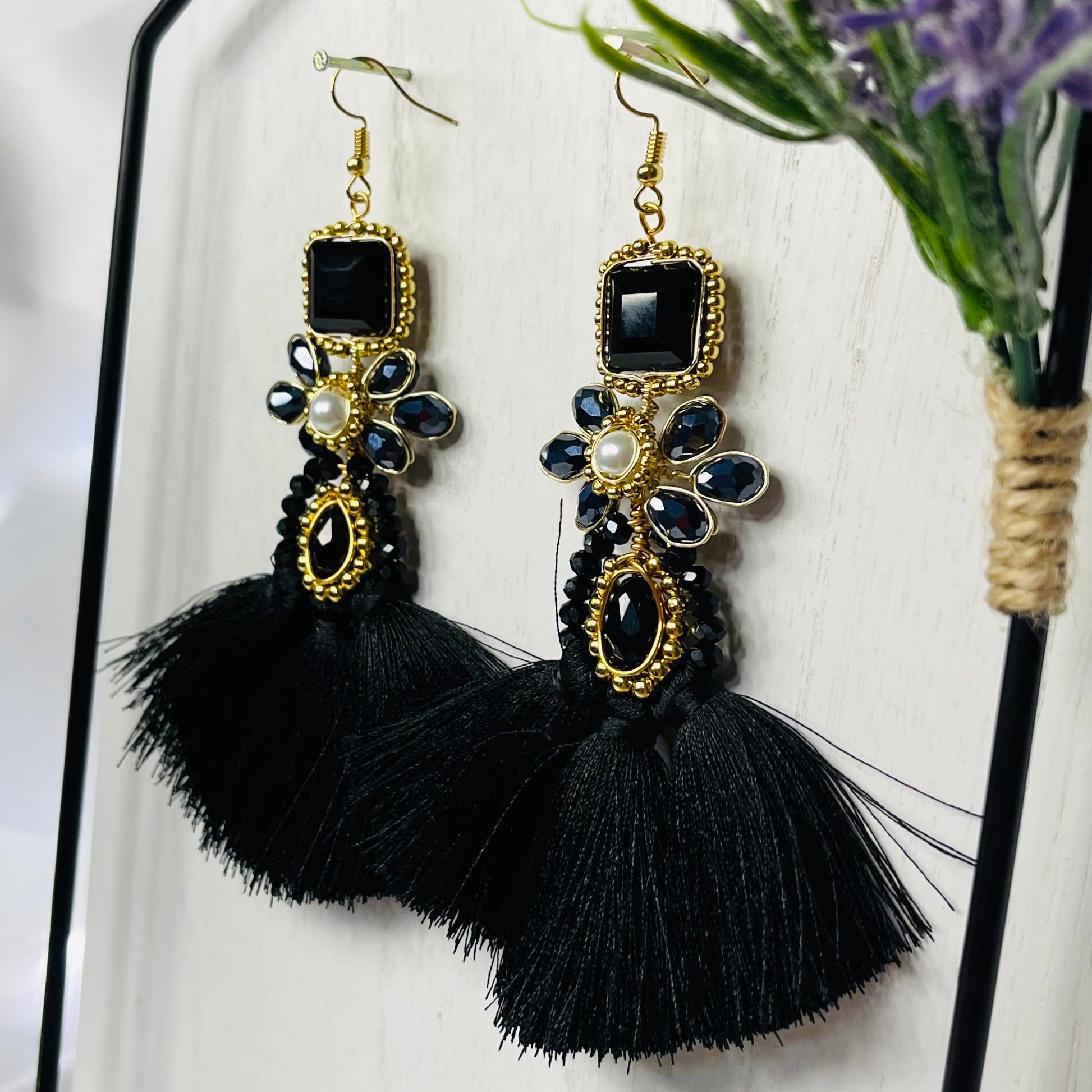 Handcrafted Mexican Tassel Crystal Earrings