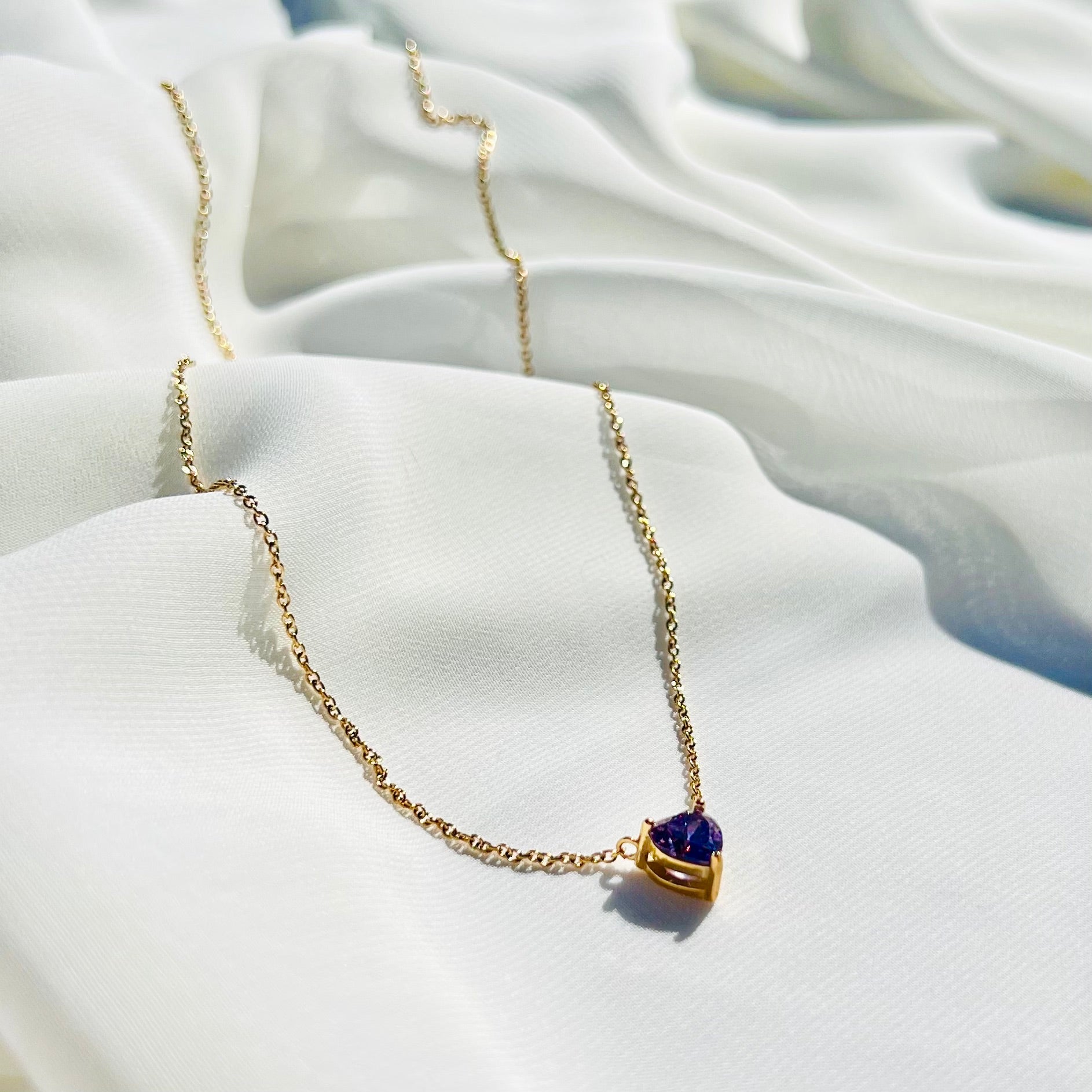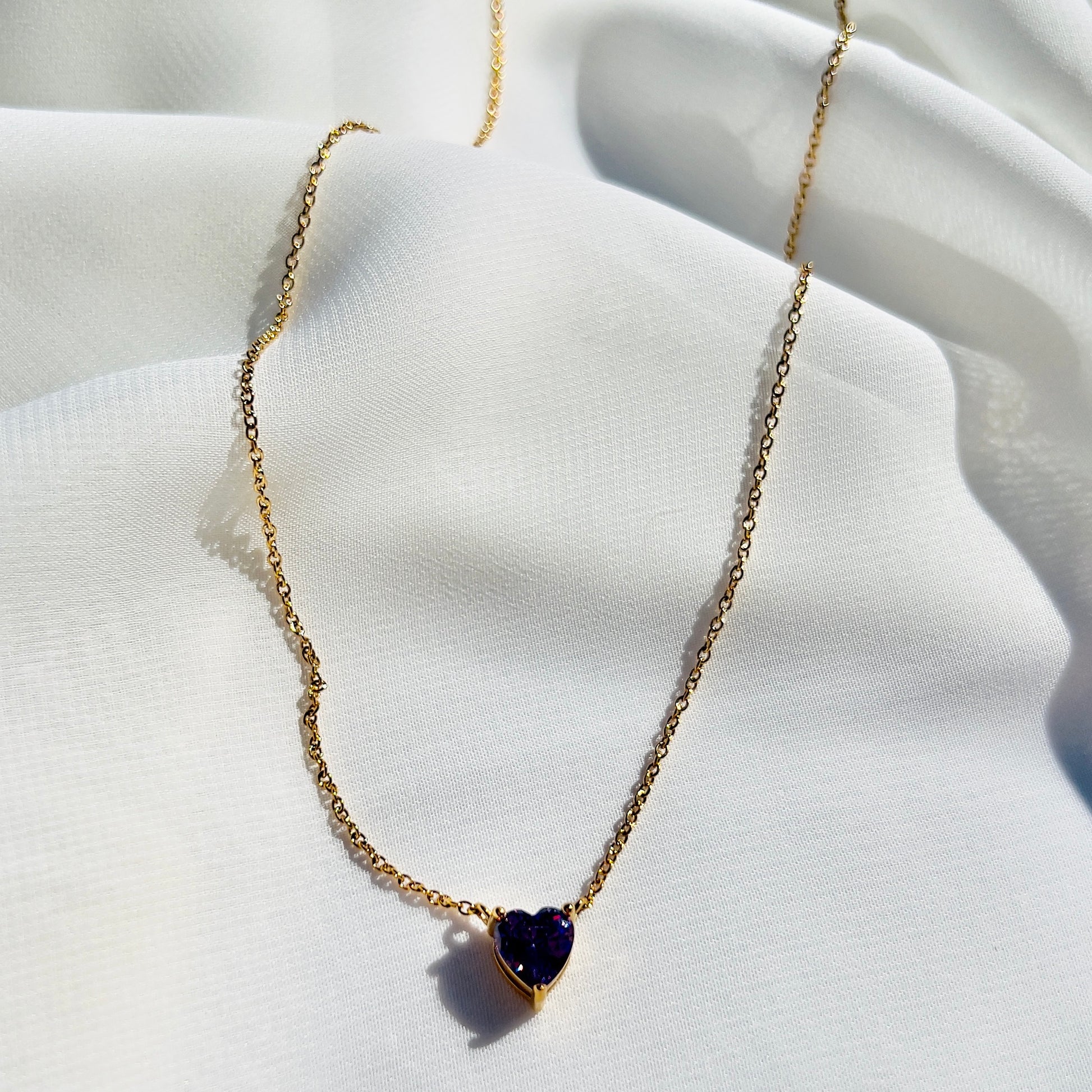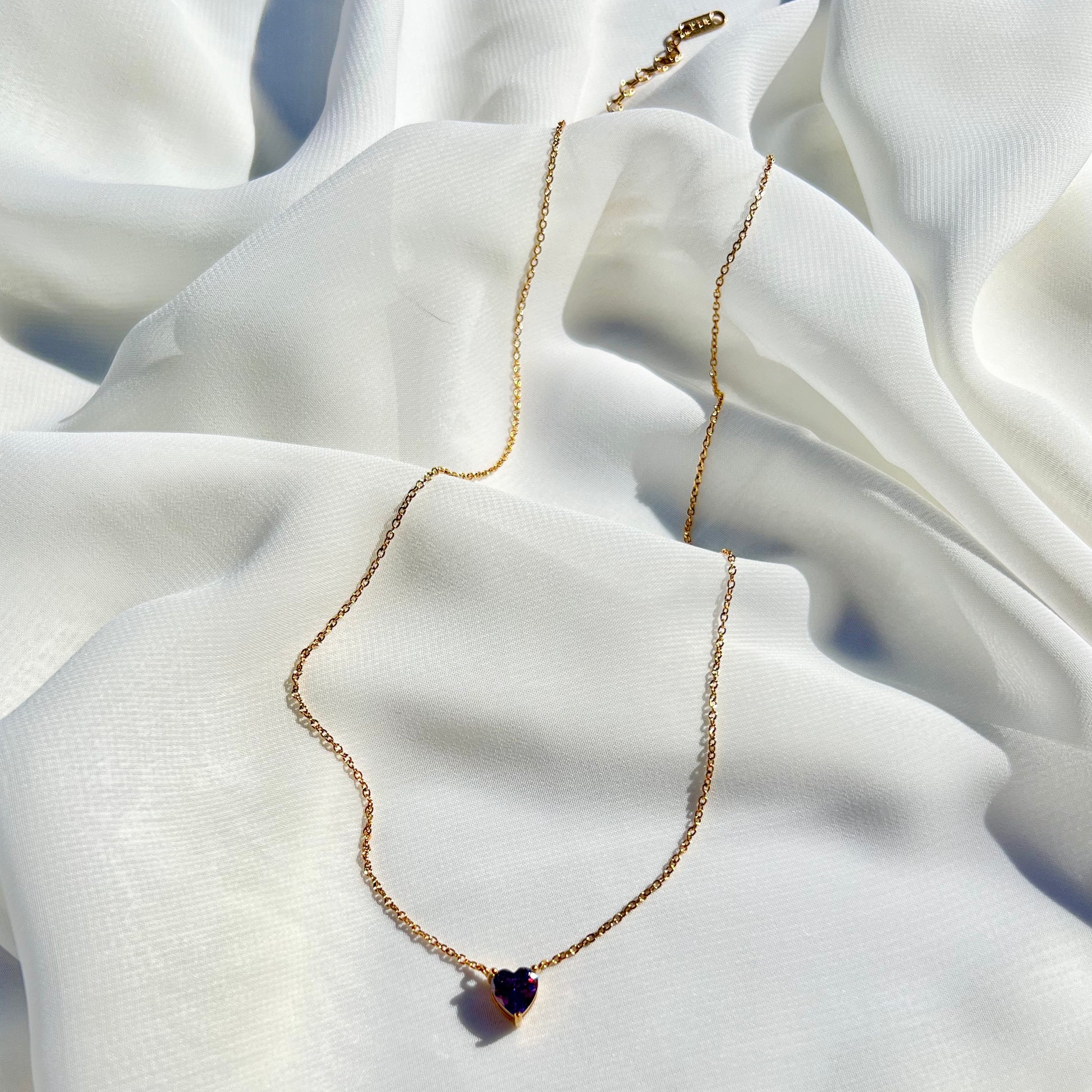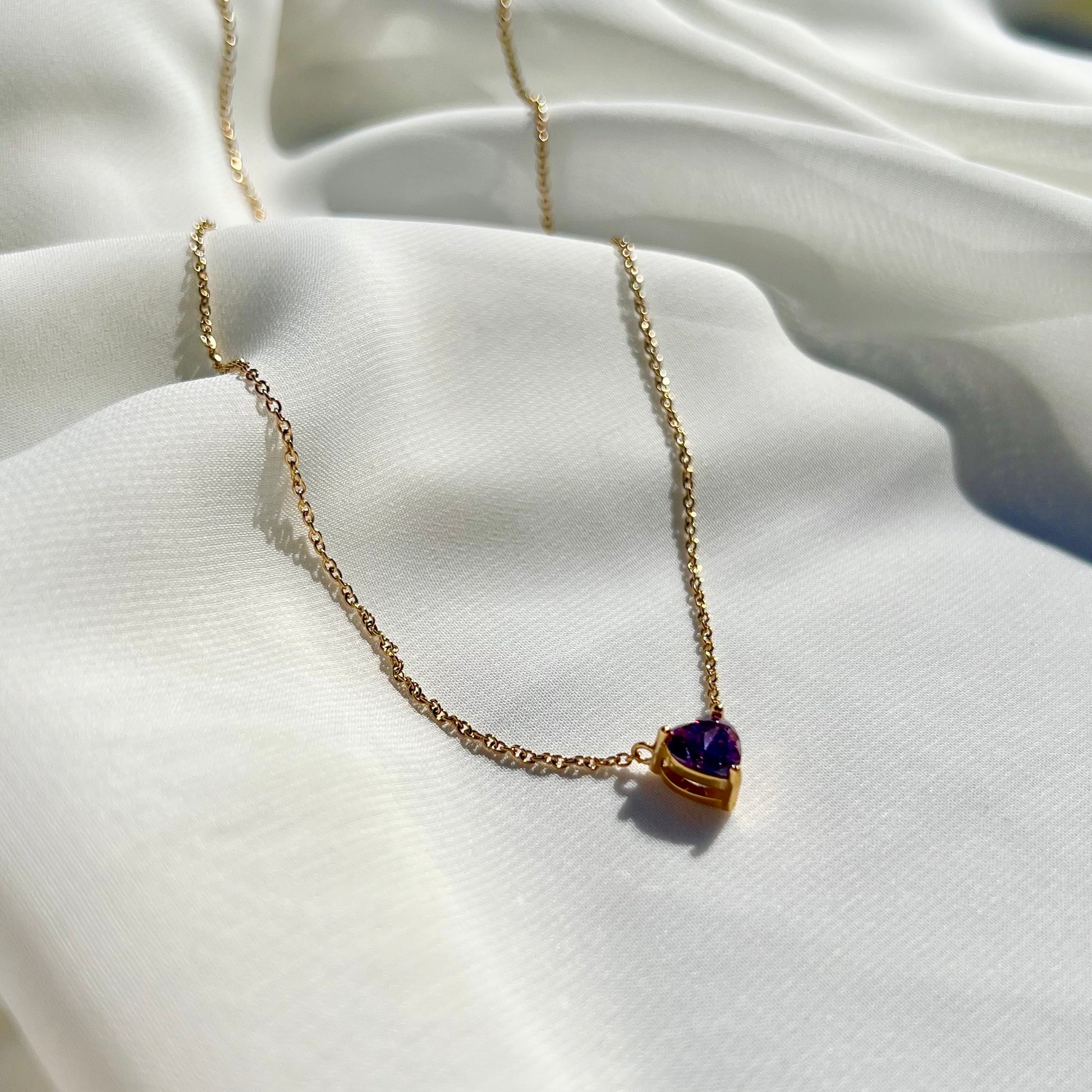 Stainless Steel 18K Gold Plated Tiny Pink Heart Shape Zircon Necklace.