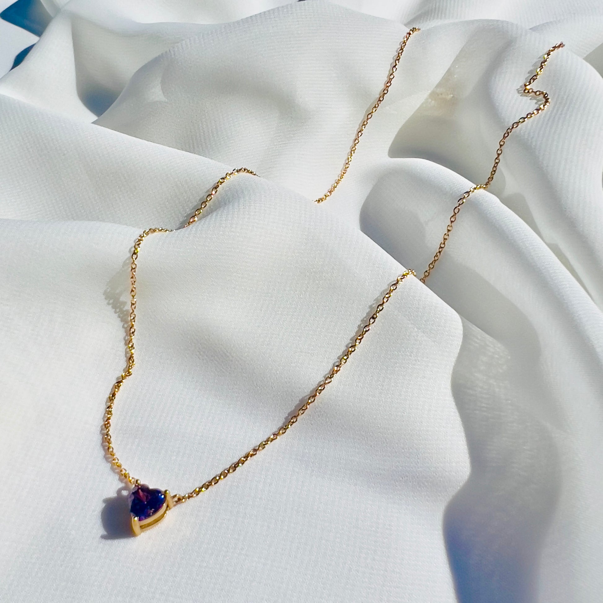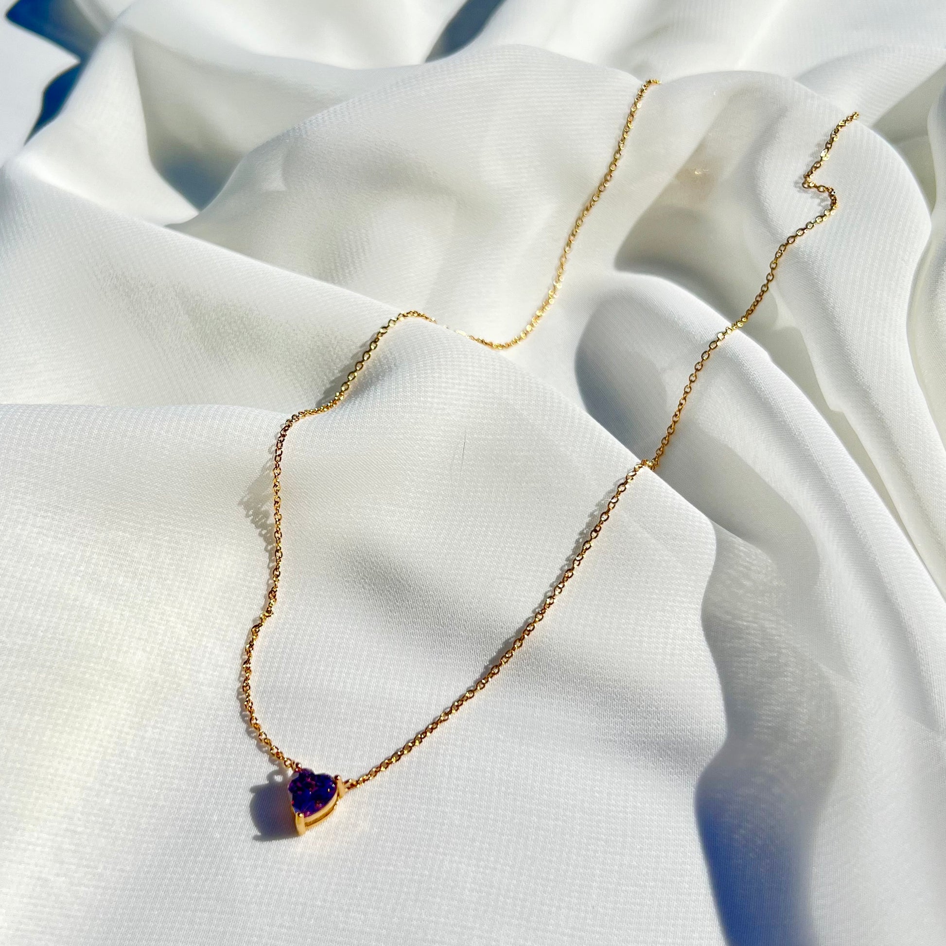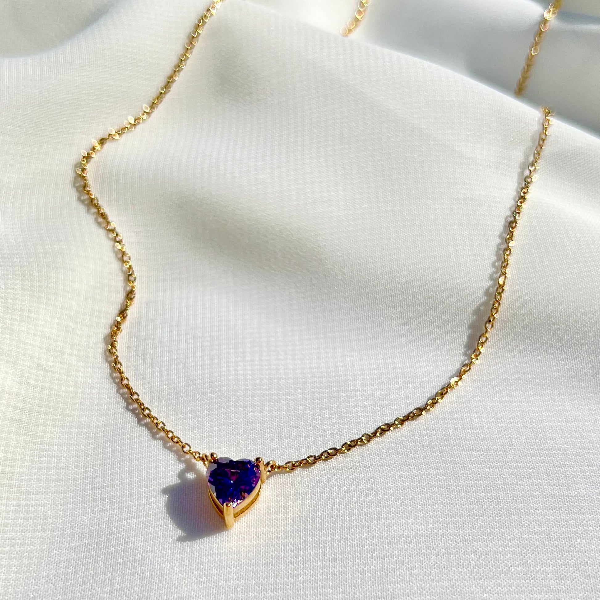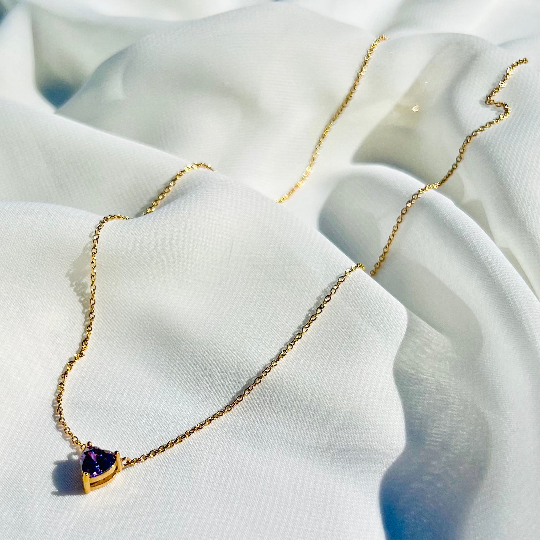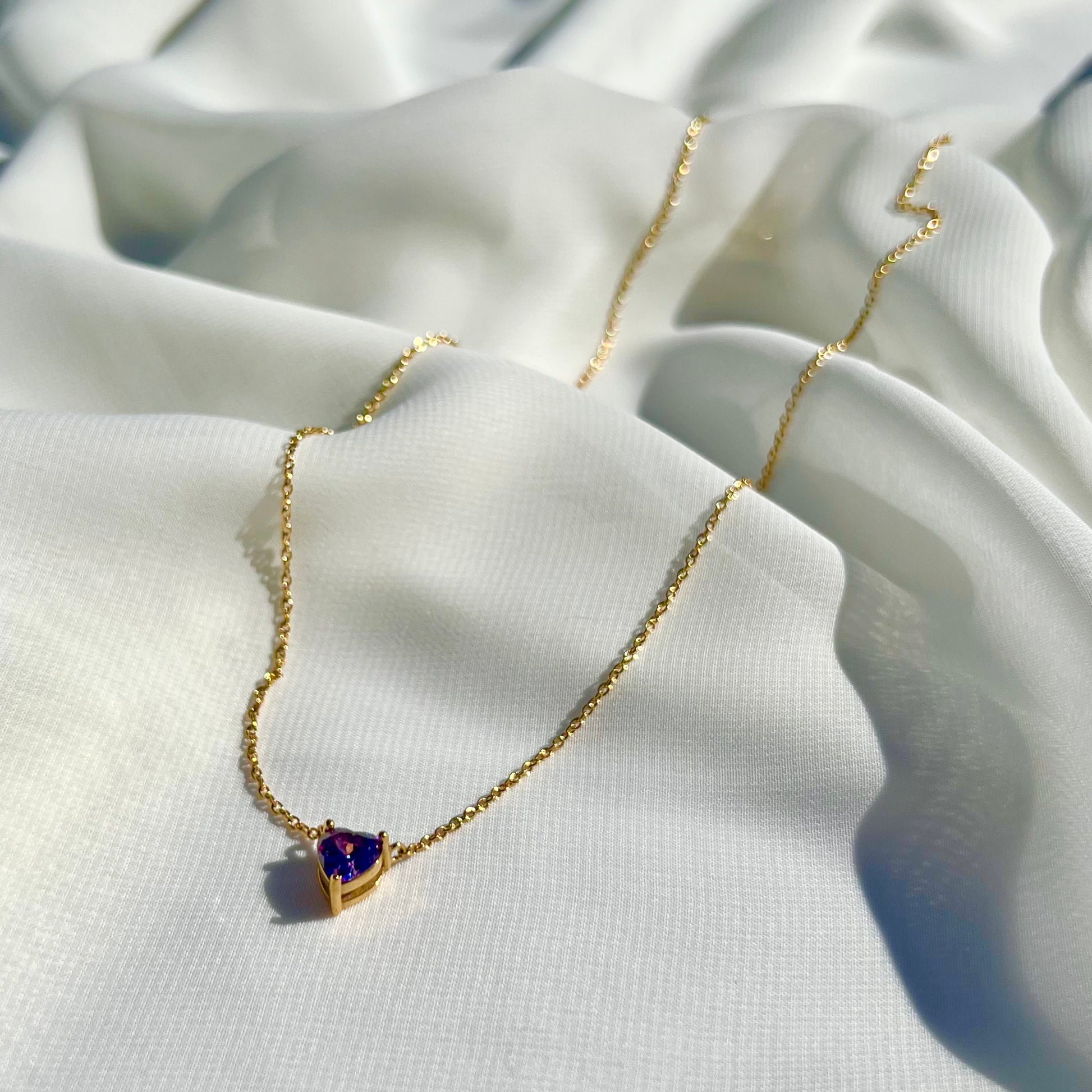 Stainless Steel 18K Gold Plated Tiny Pink Heart Shape Zircon Necklace.