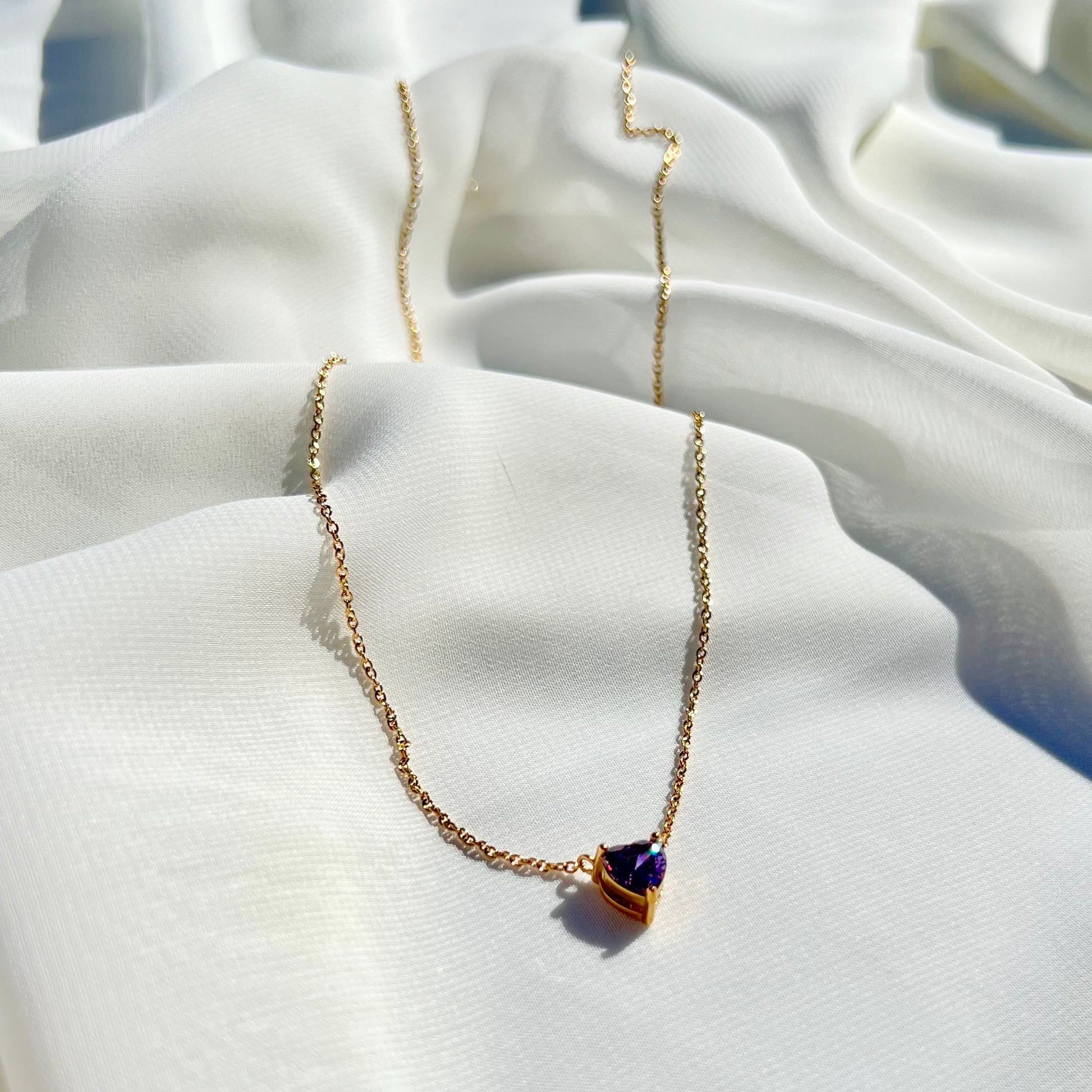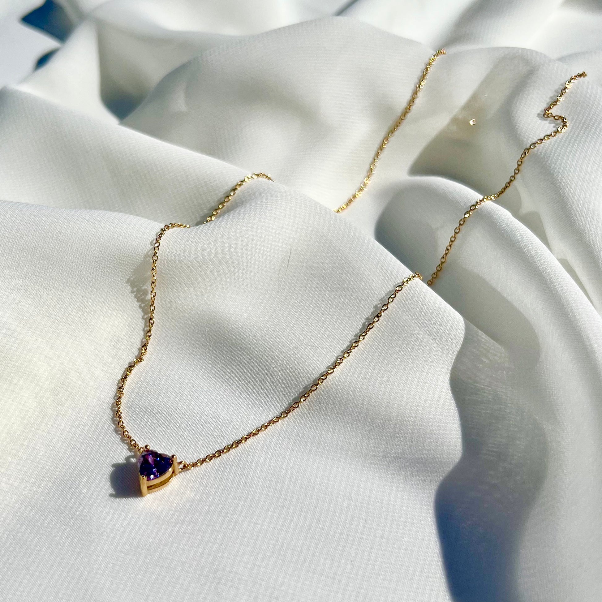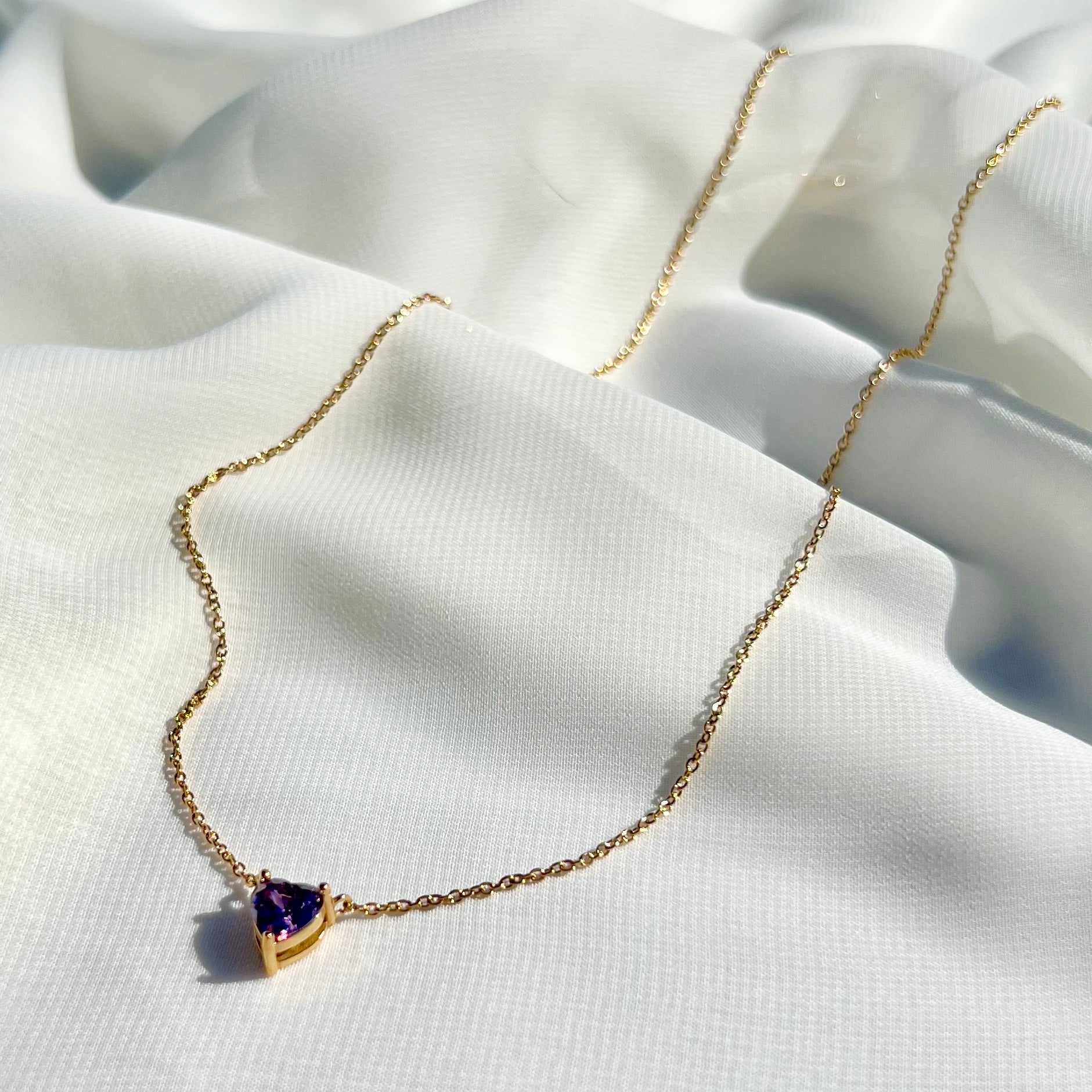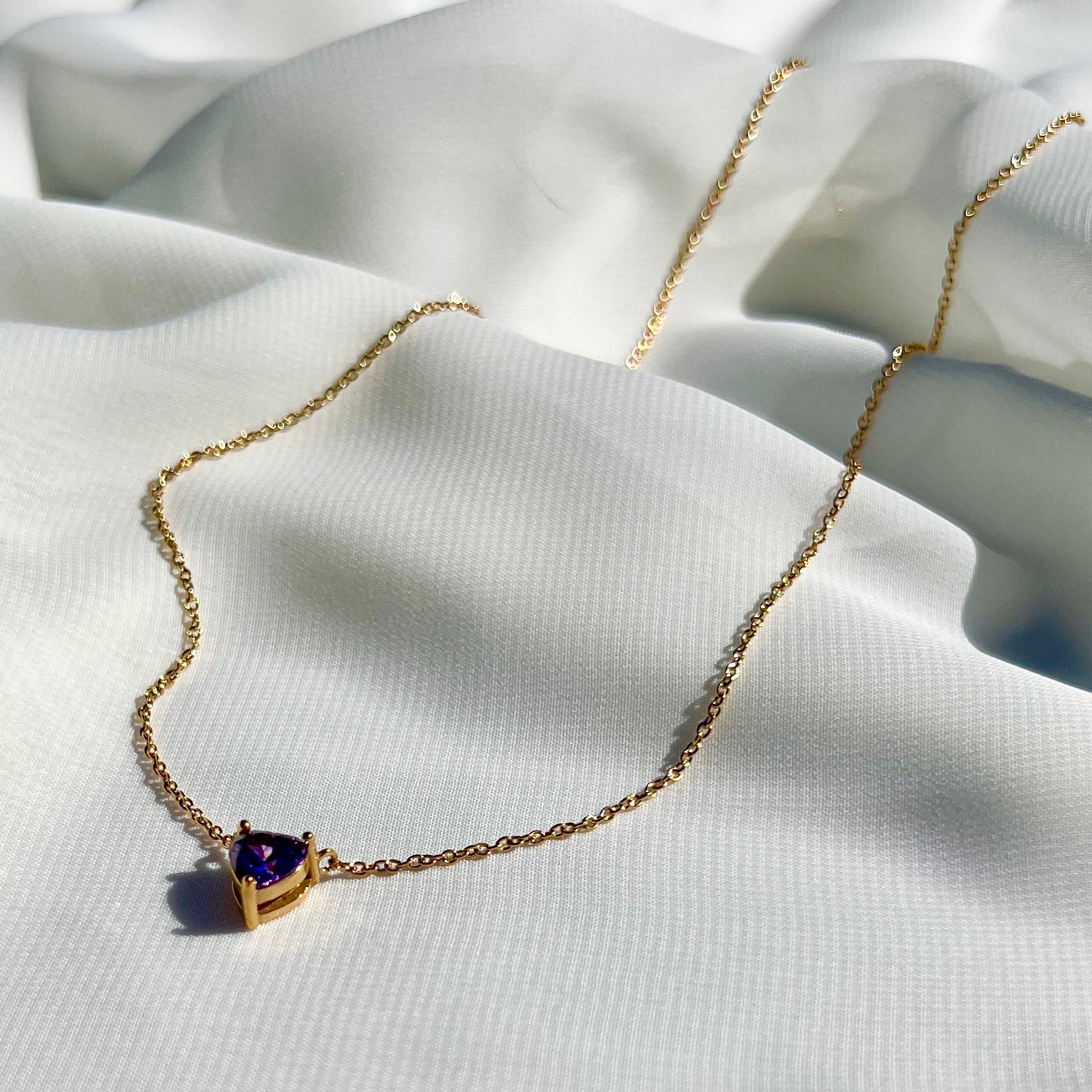 Stainless Steel 18K Gold Plated Tiny Pink Heart Shape Zircon Necklace.