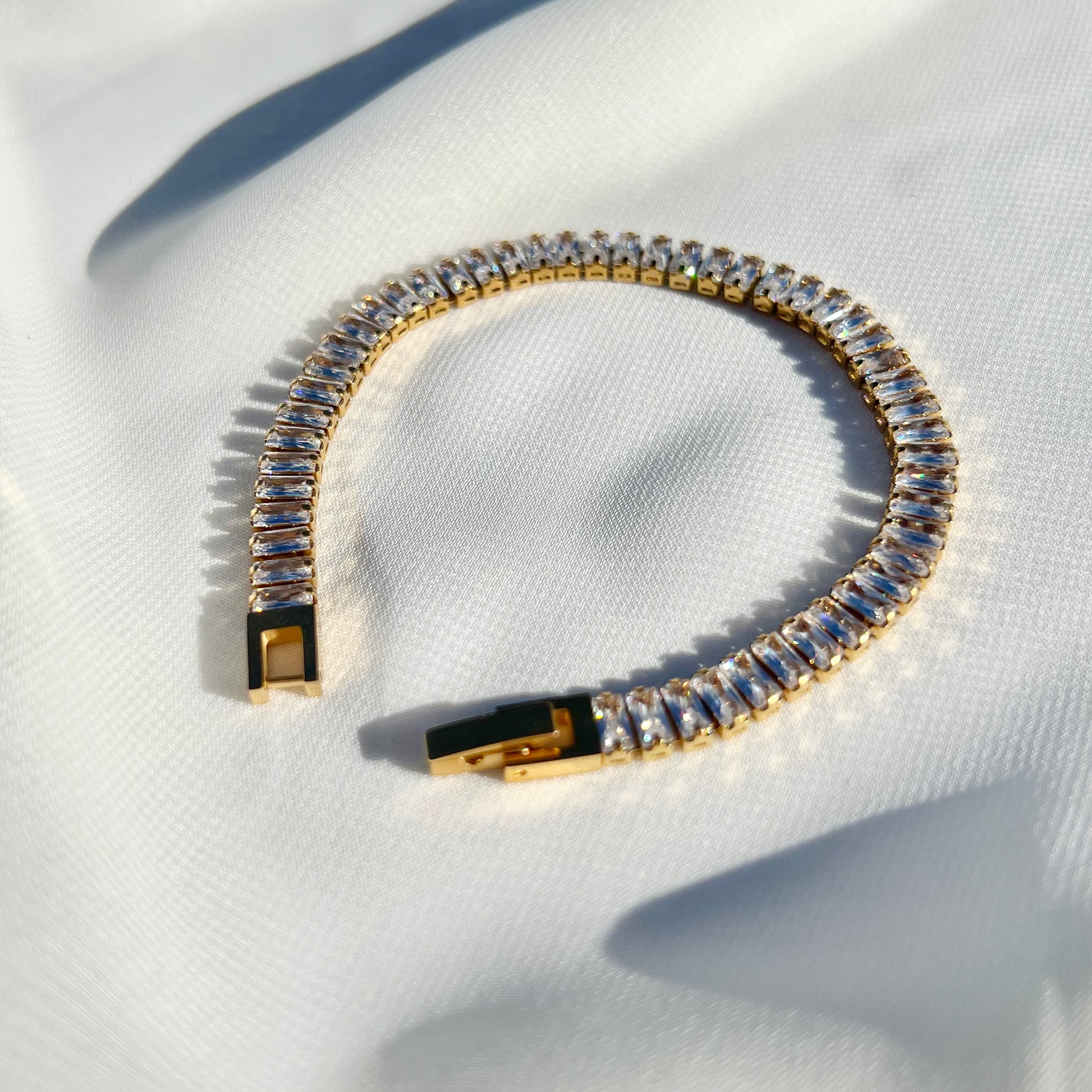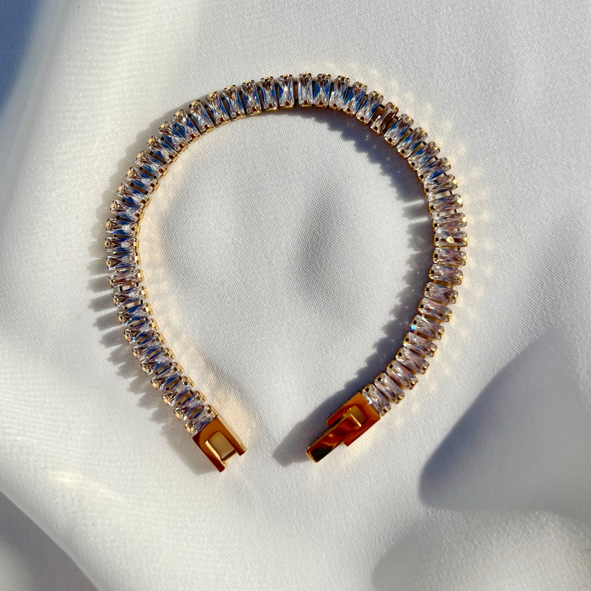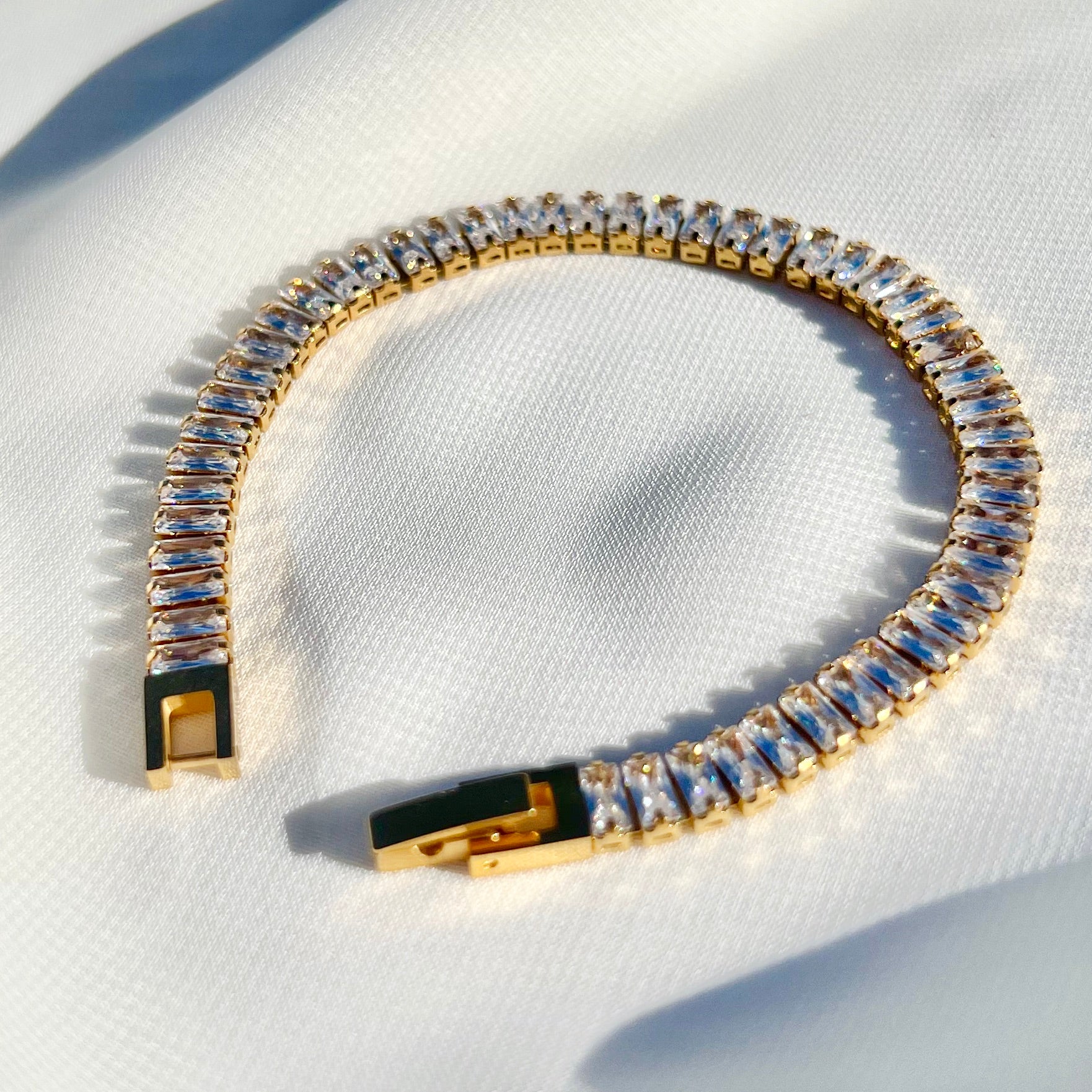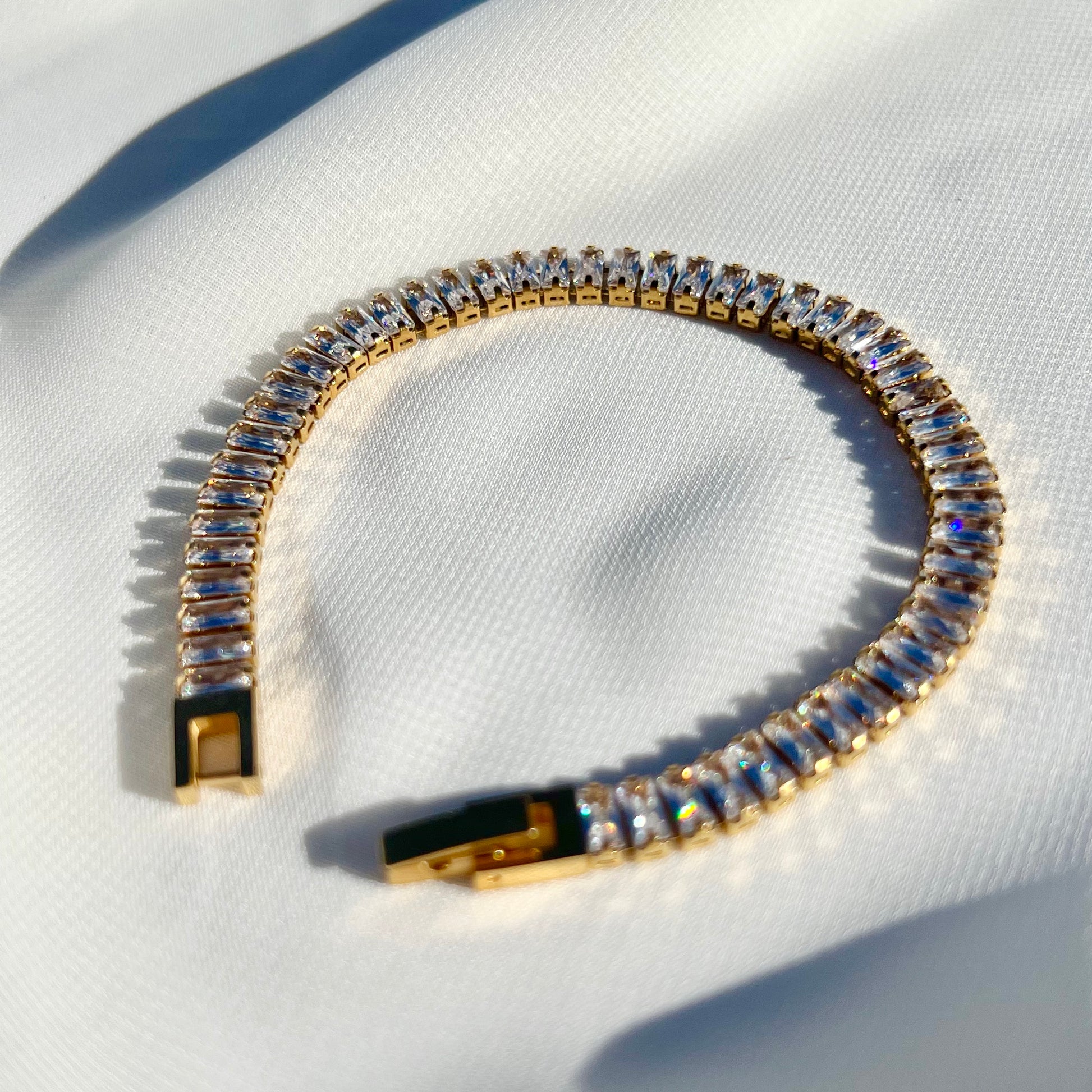 Luxury Non Tarnish & Waterproof Shiny Baguette 18K Gold Plated Statement Zirconia Stainless Steel crystal Necklace.
