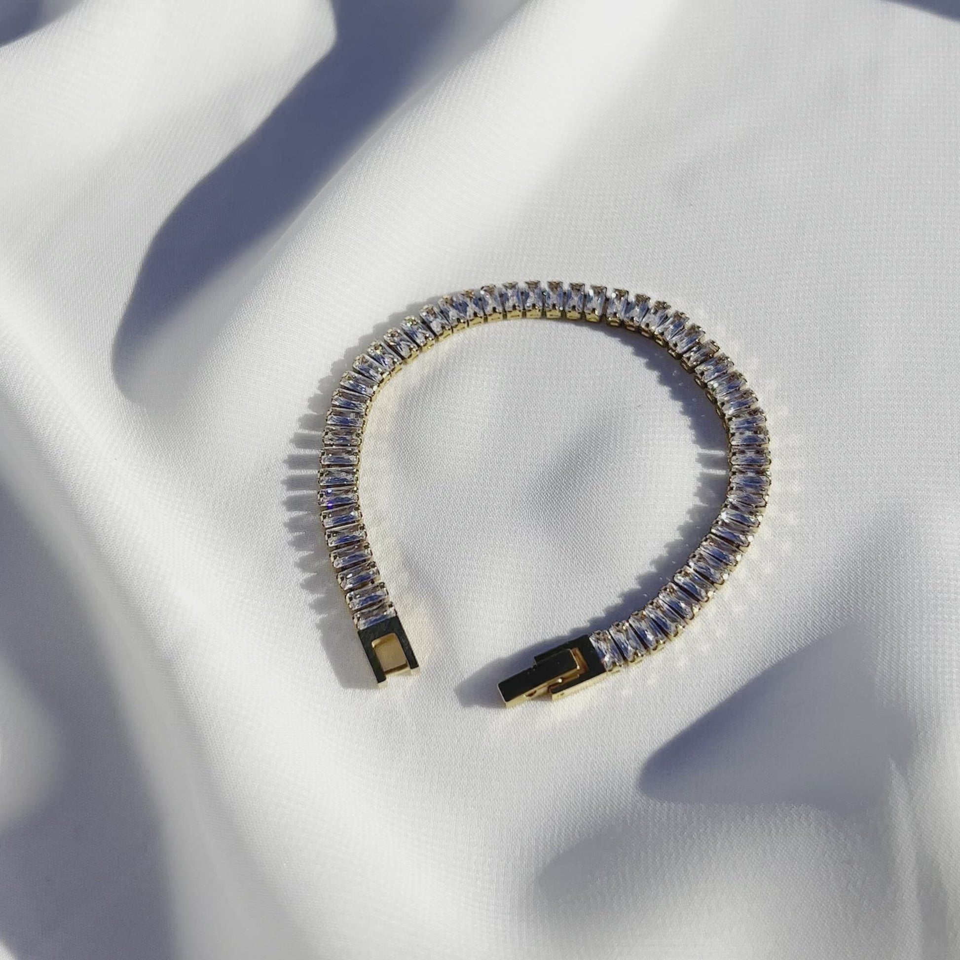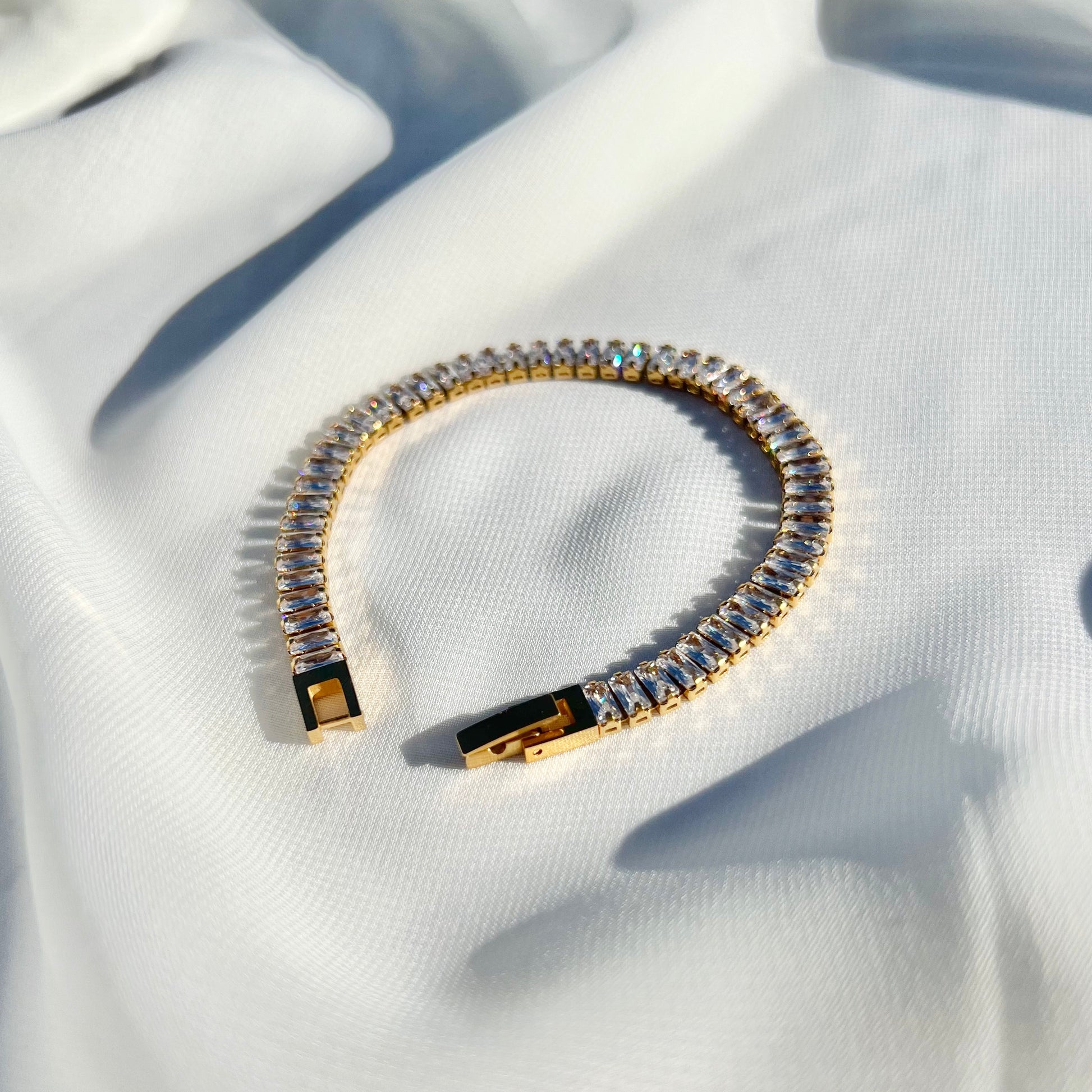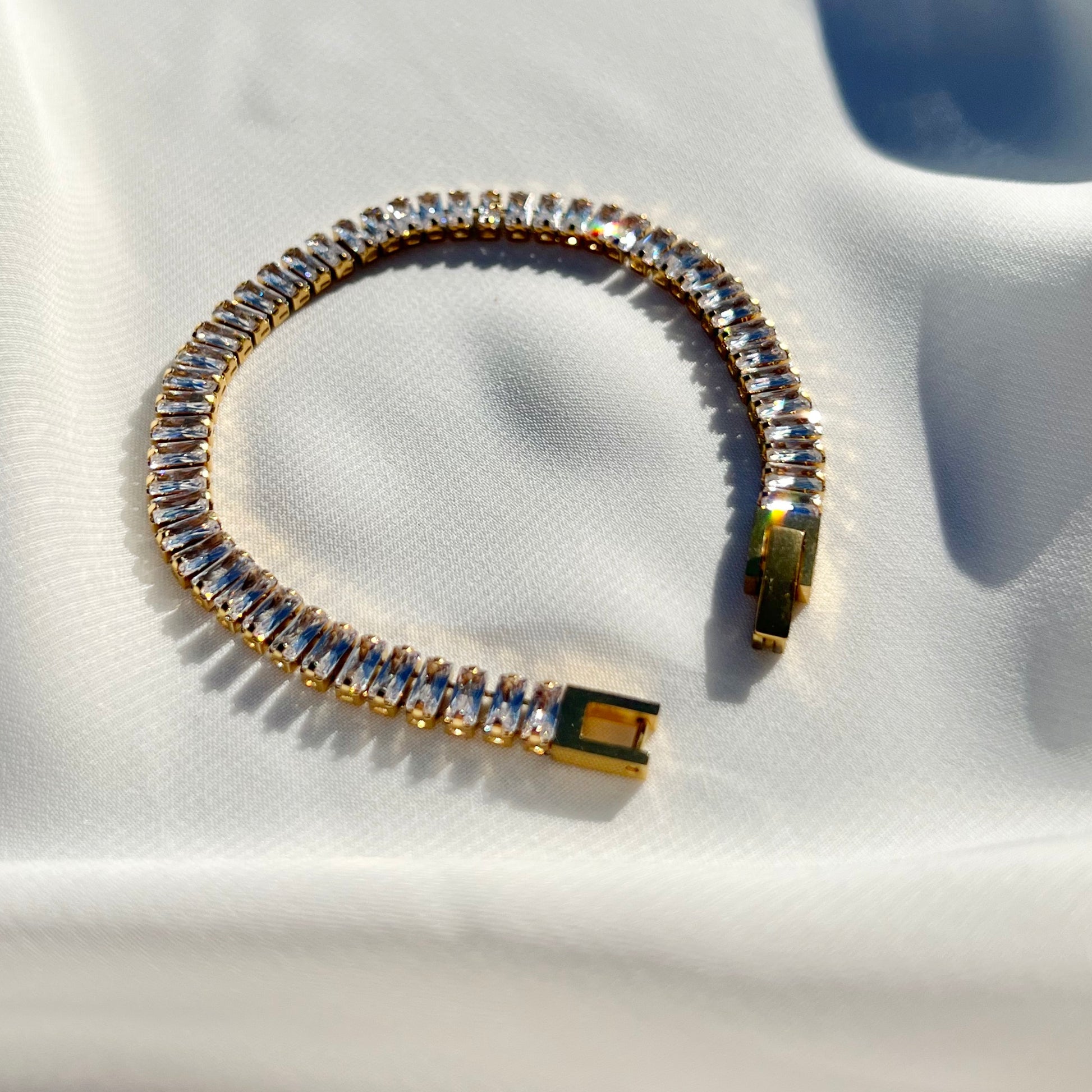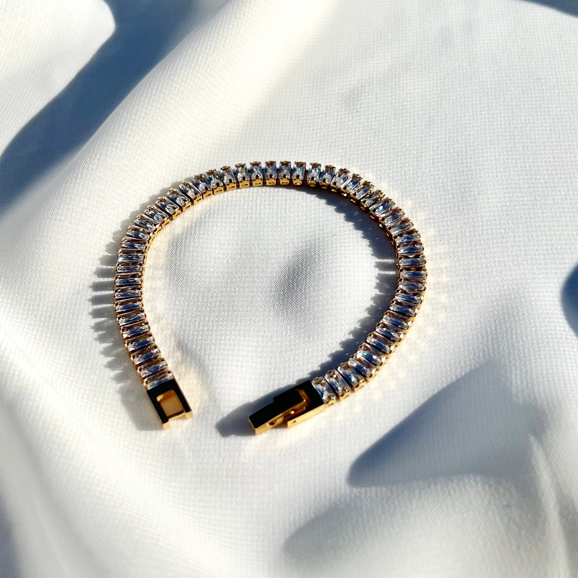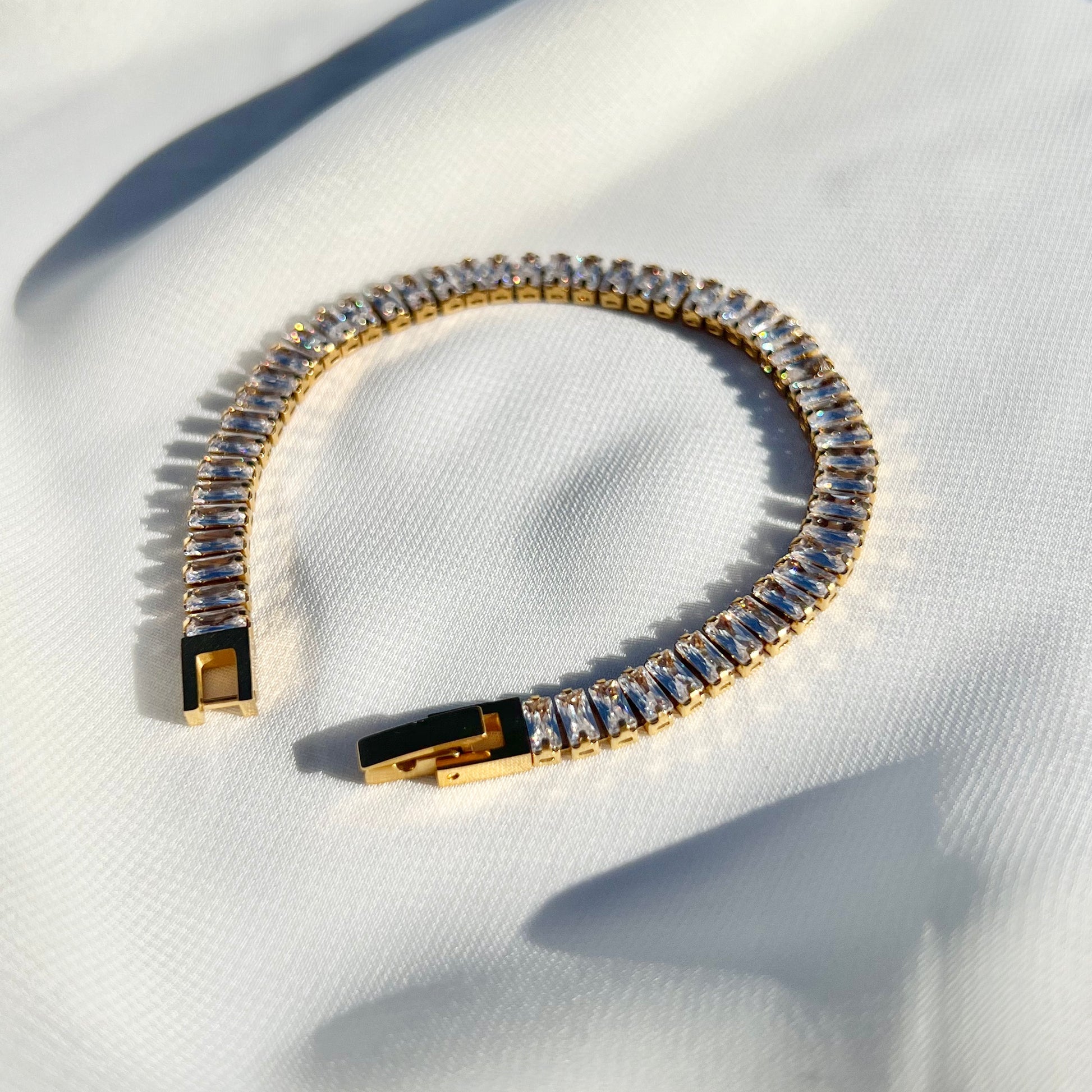 Luxury Non Tarnish & Waterproof Shiny Baguette 18K Gold Plated Statement Zirconia Stainless Steel crystal Necklace.