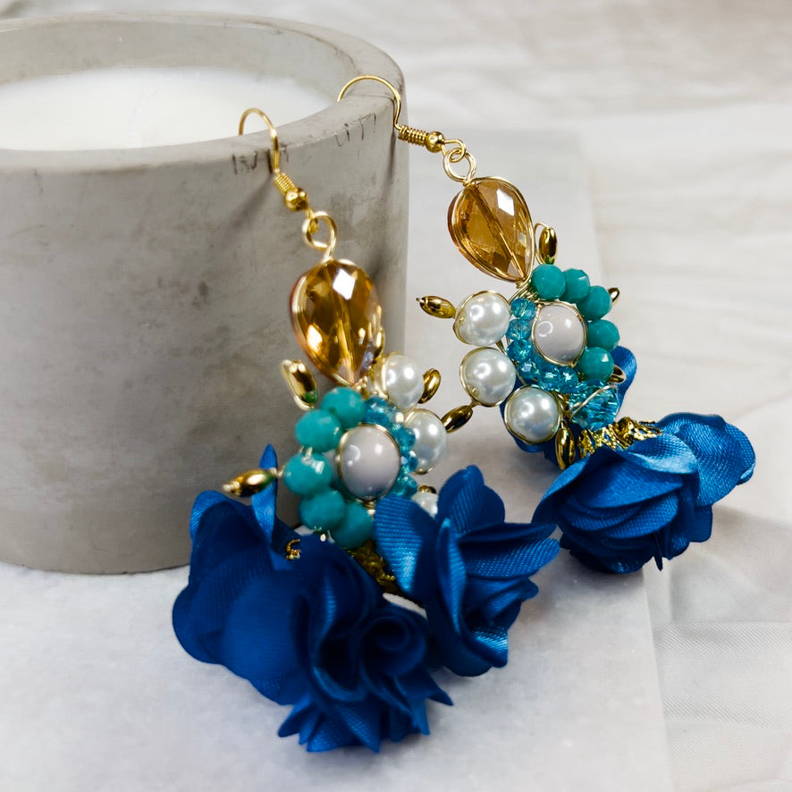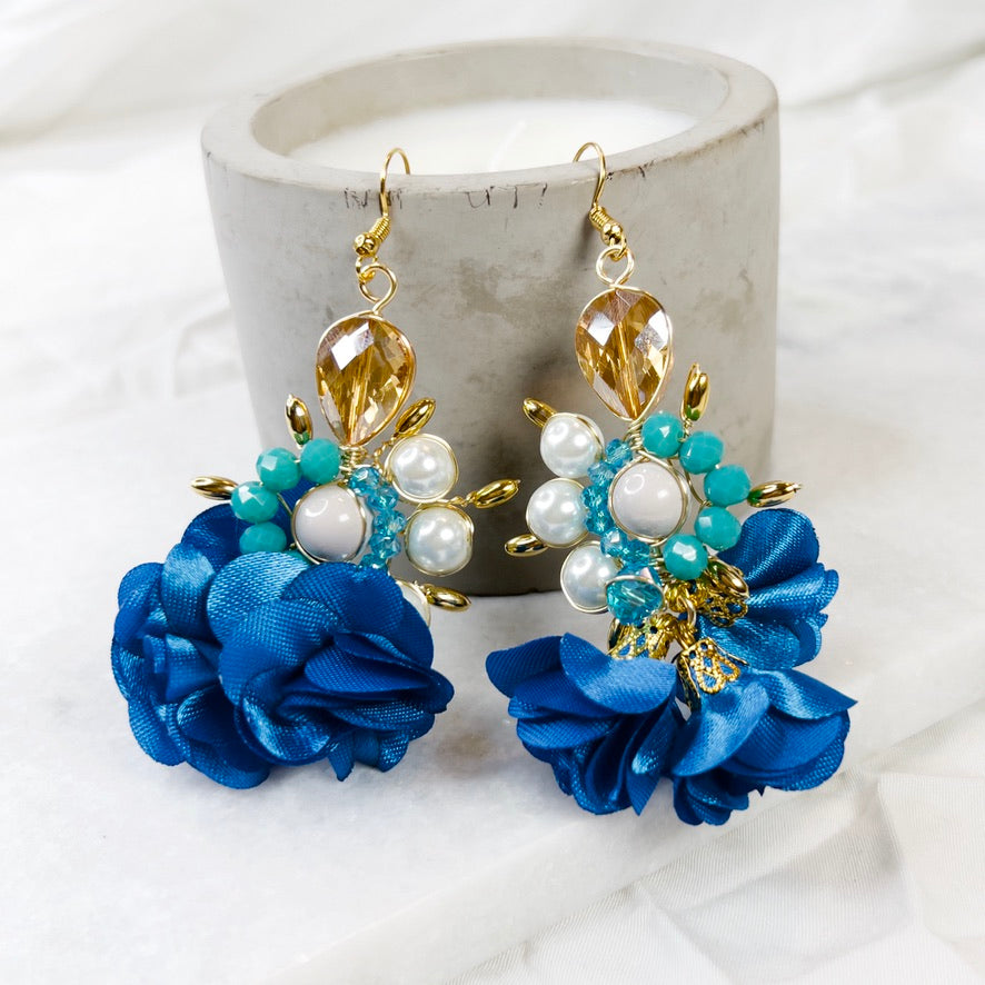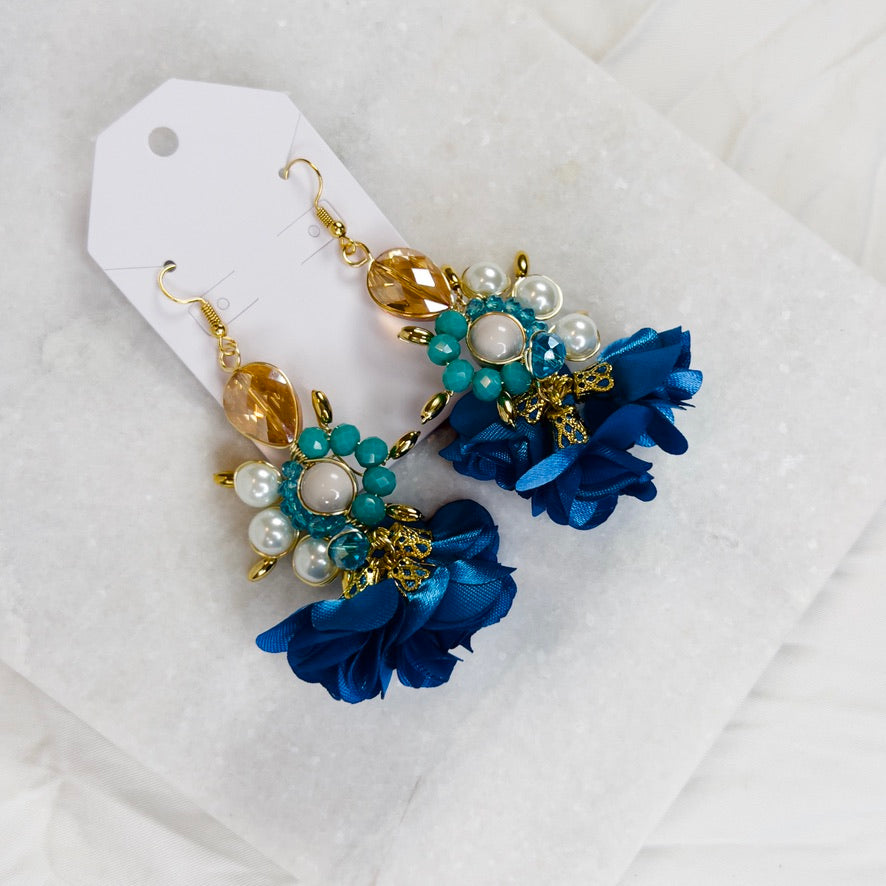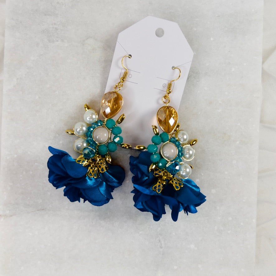 Aretes Artesanales Mexicanos de Cristal y Borla de Hilo