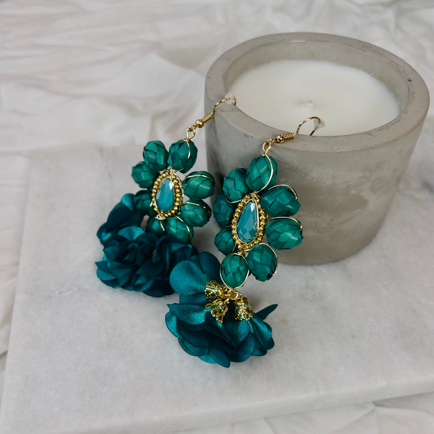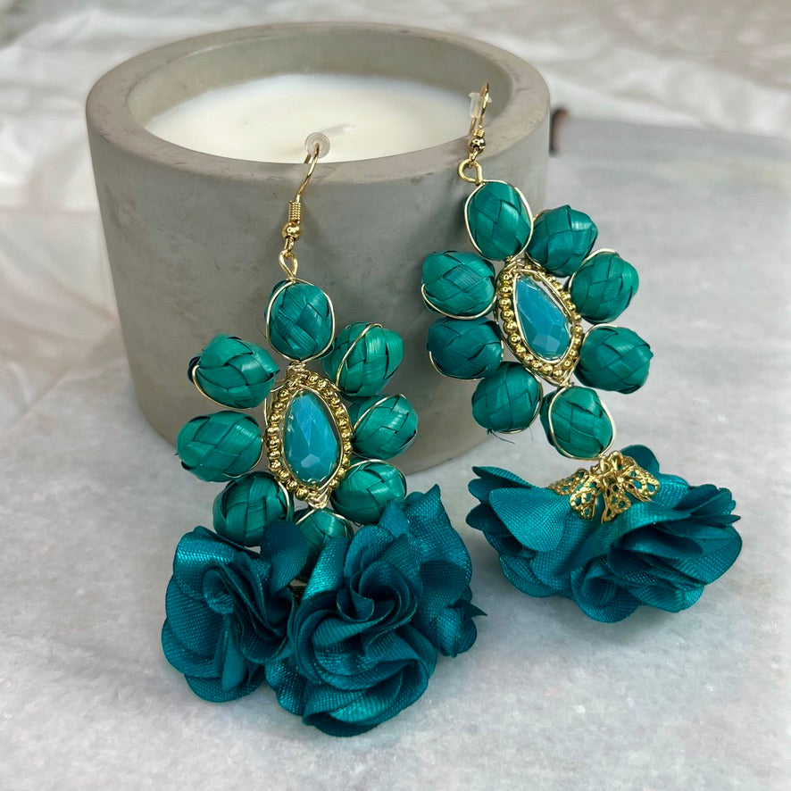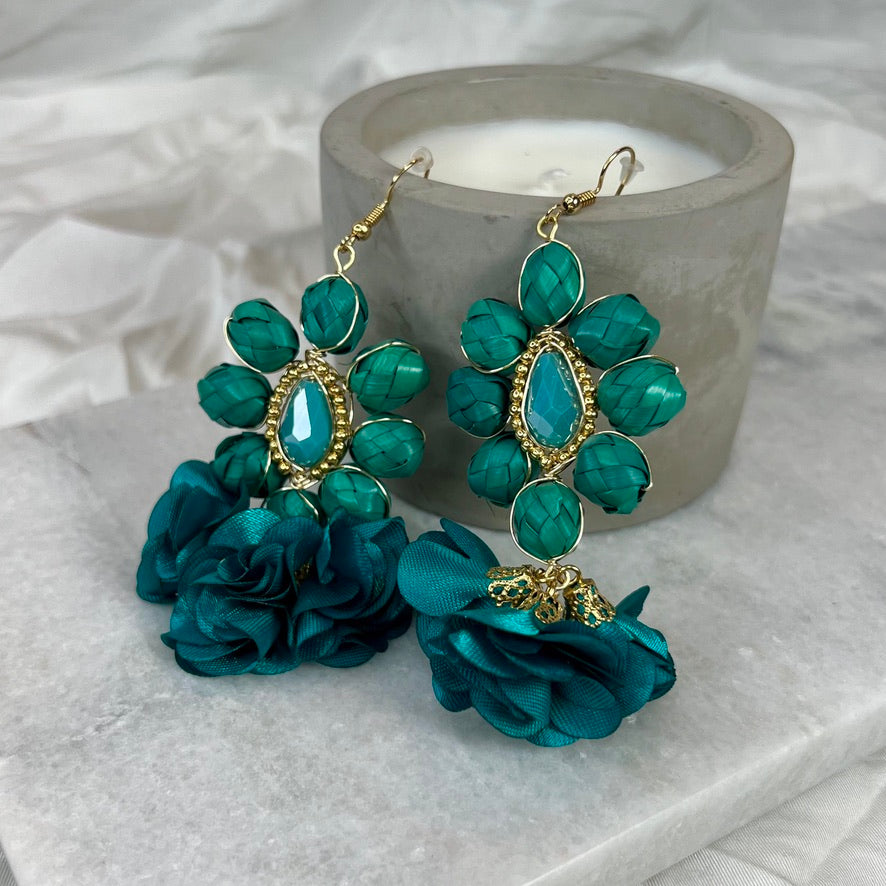 Aretes Artesanales Mexicanos de Cristal y Borla de Hilo