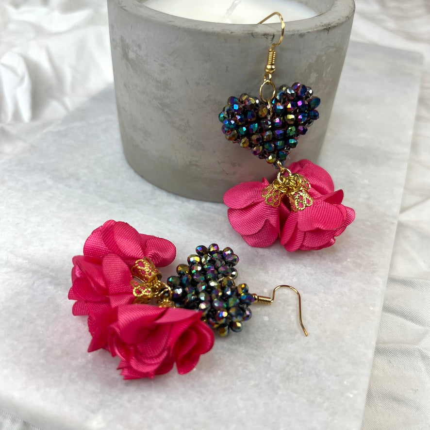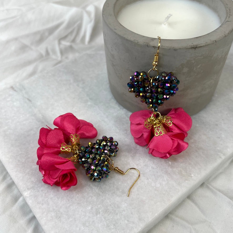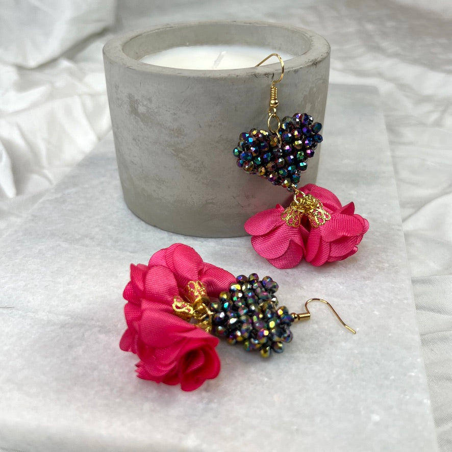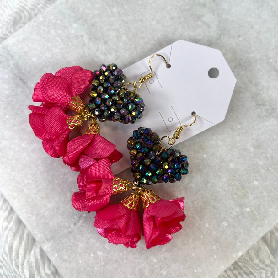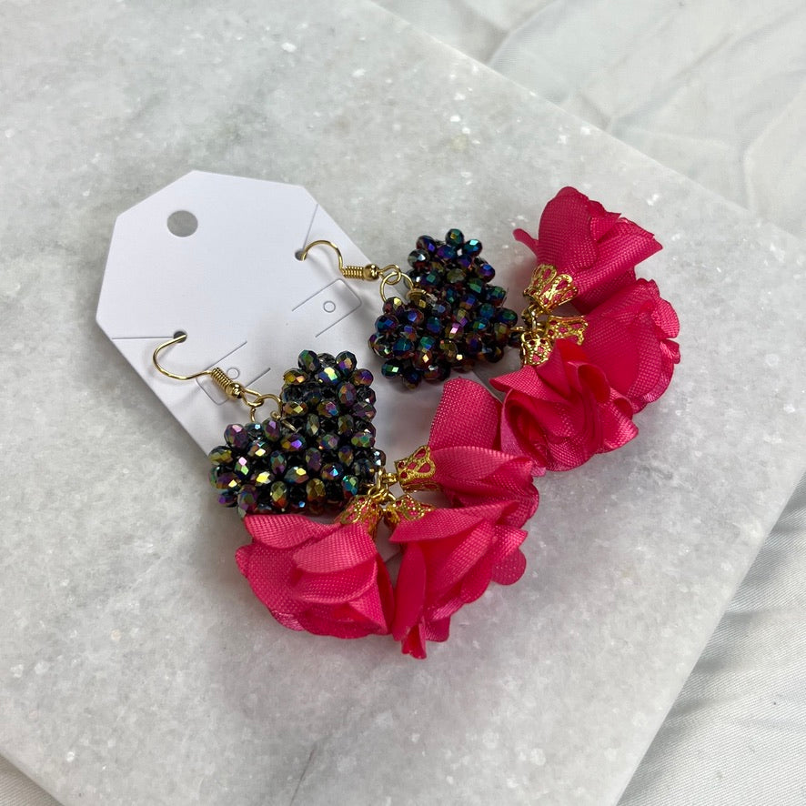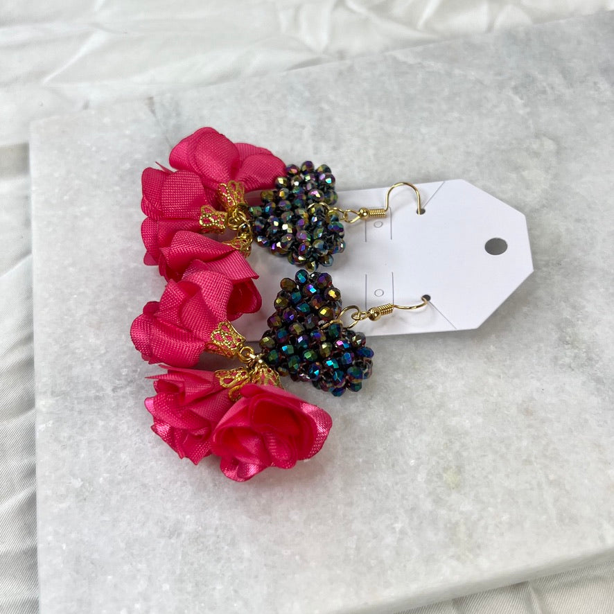 Aretes Artesanales Mexicanos de Cristal y Borla de Hilo