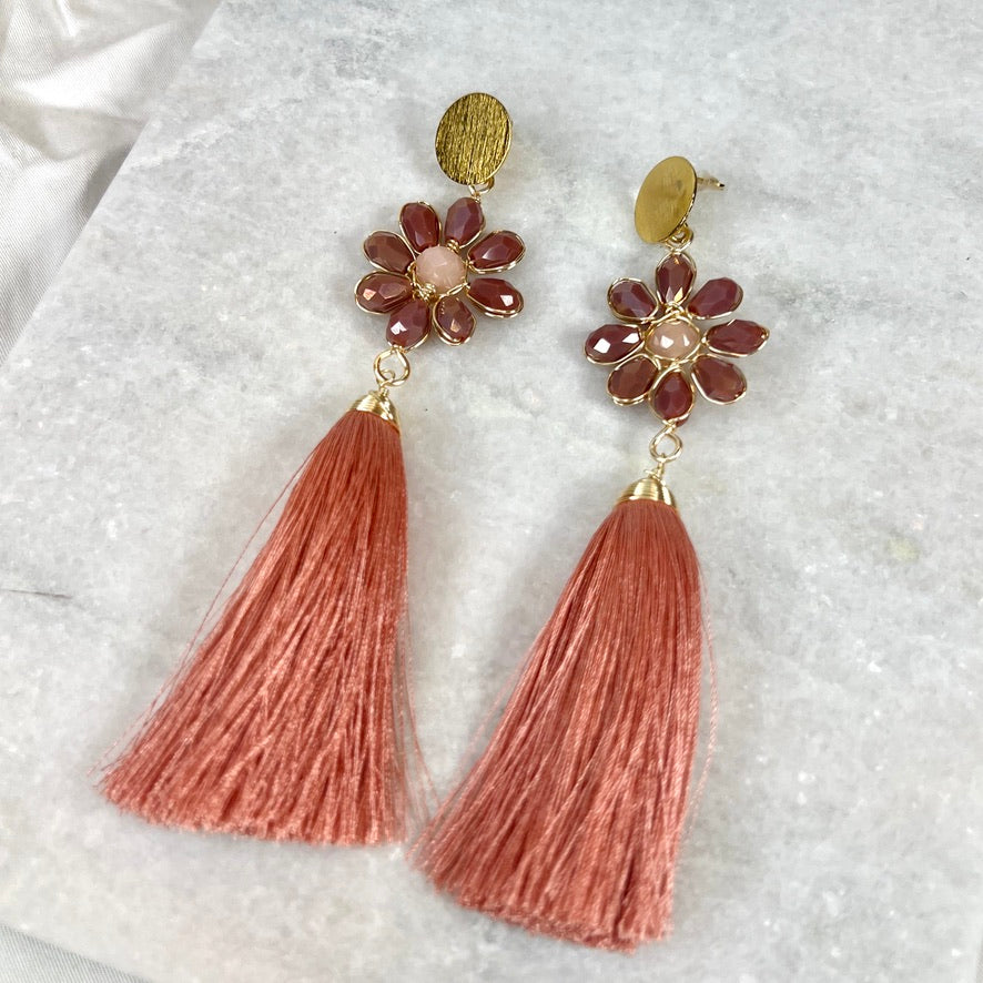 Aretes Artesanales Mexicanos de Cristal y Borla de Hilo