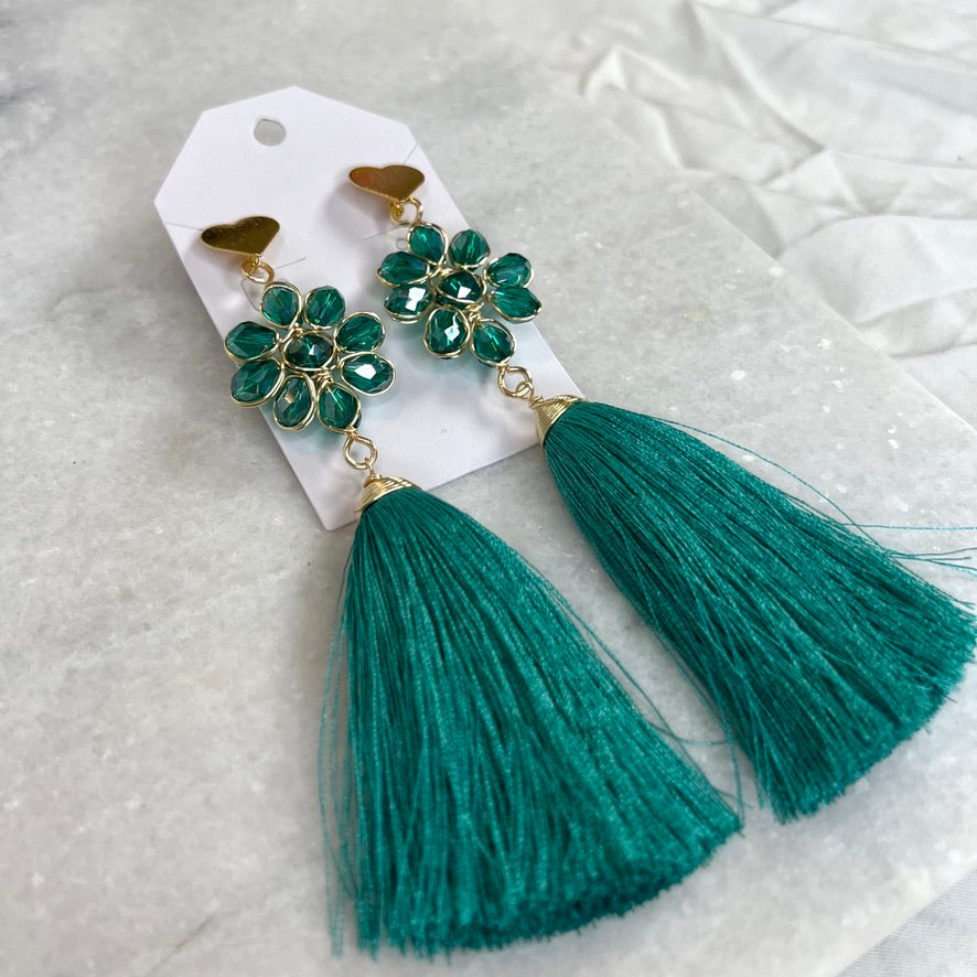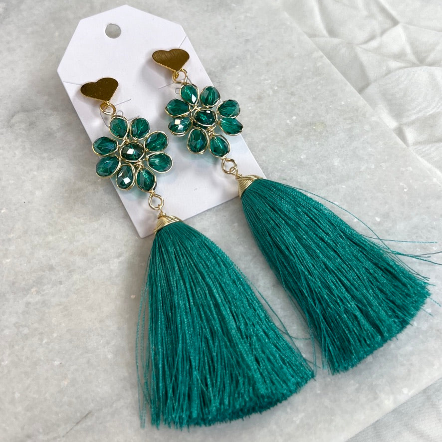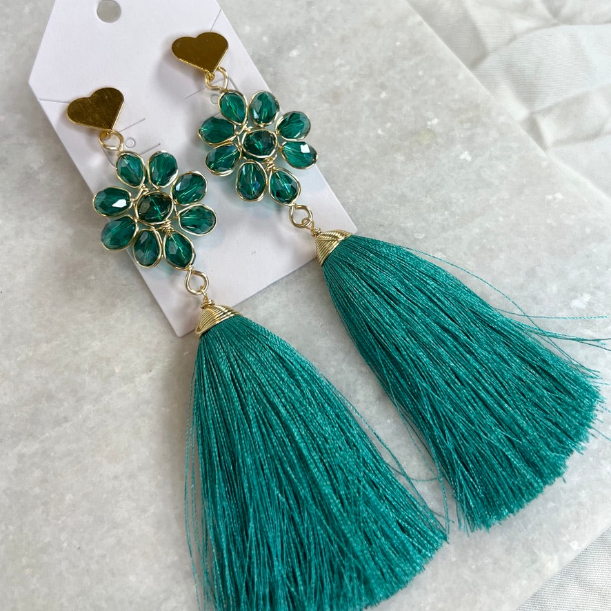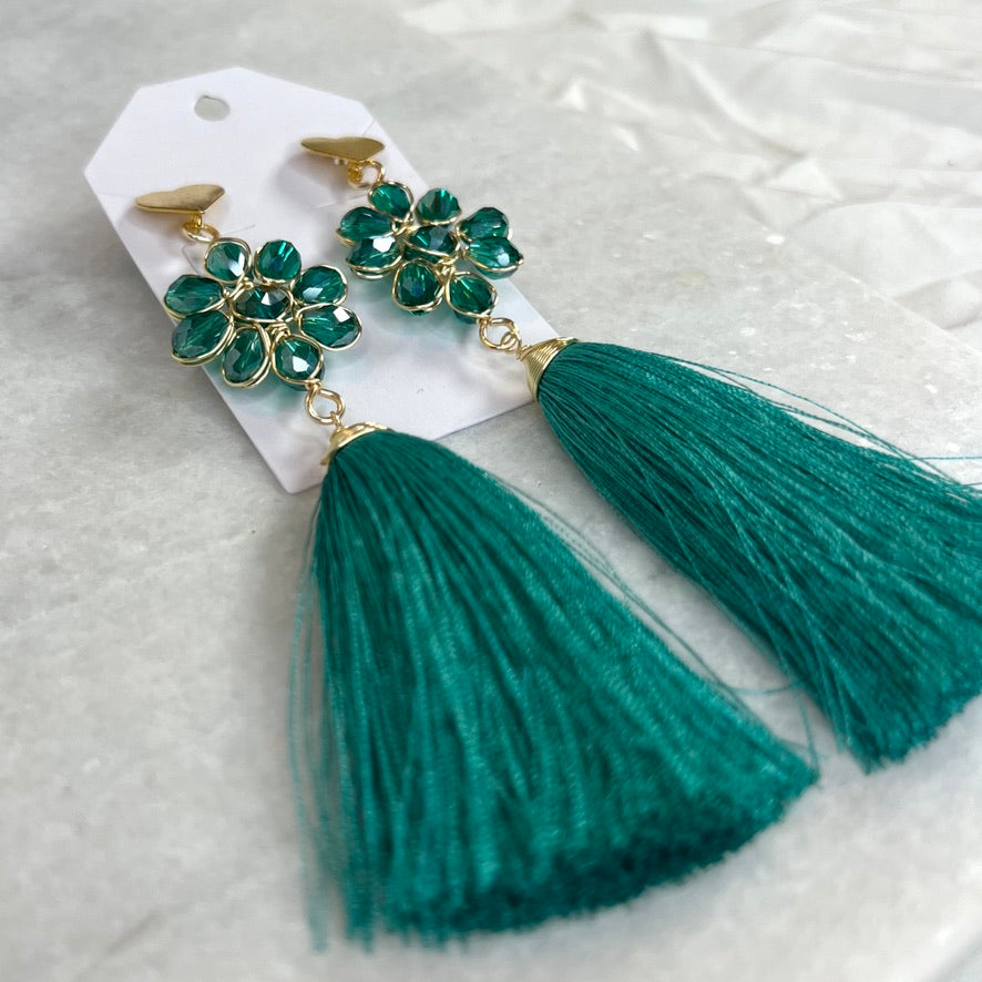 Handcrafted Mexican Tassel Crystal Earrings