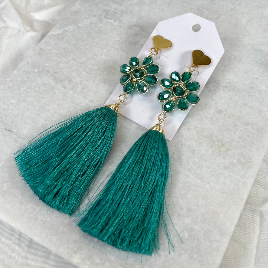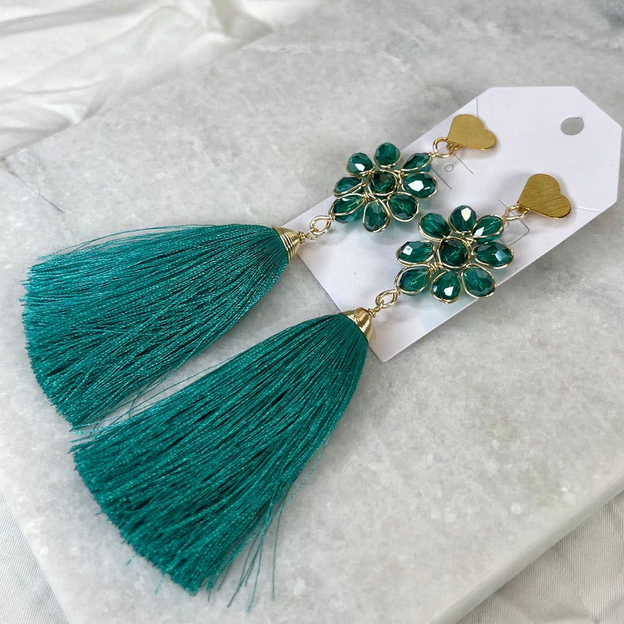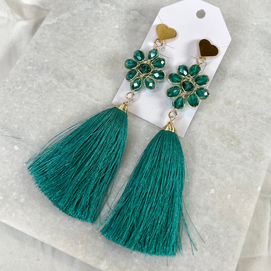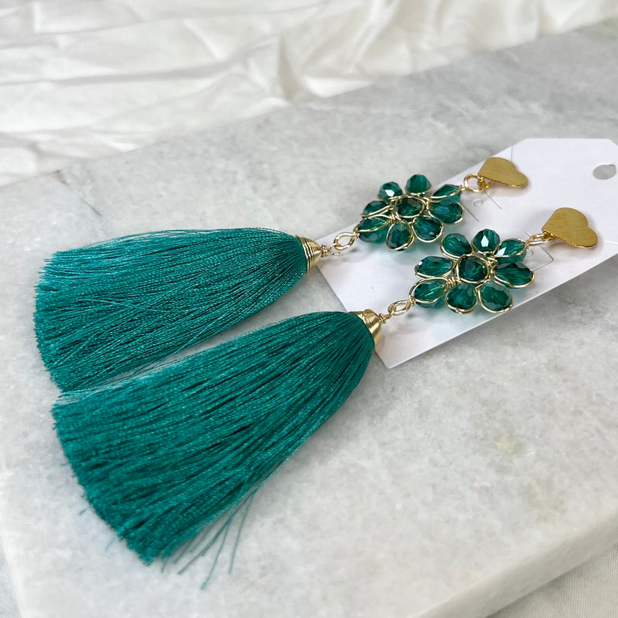 Handcrafted Mexican Tassel Crystal Earrings