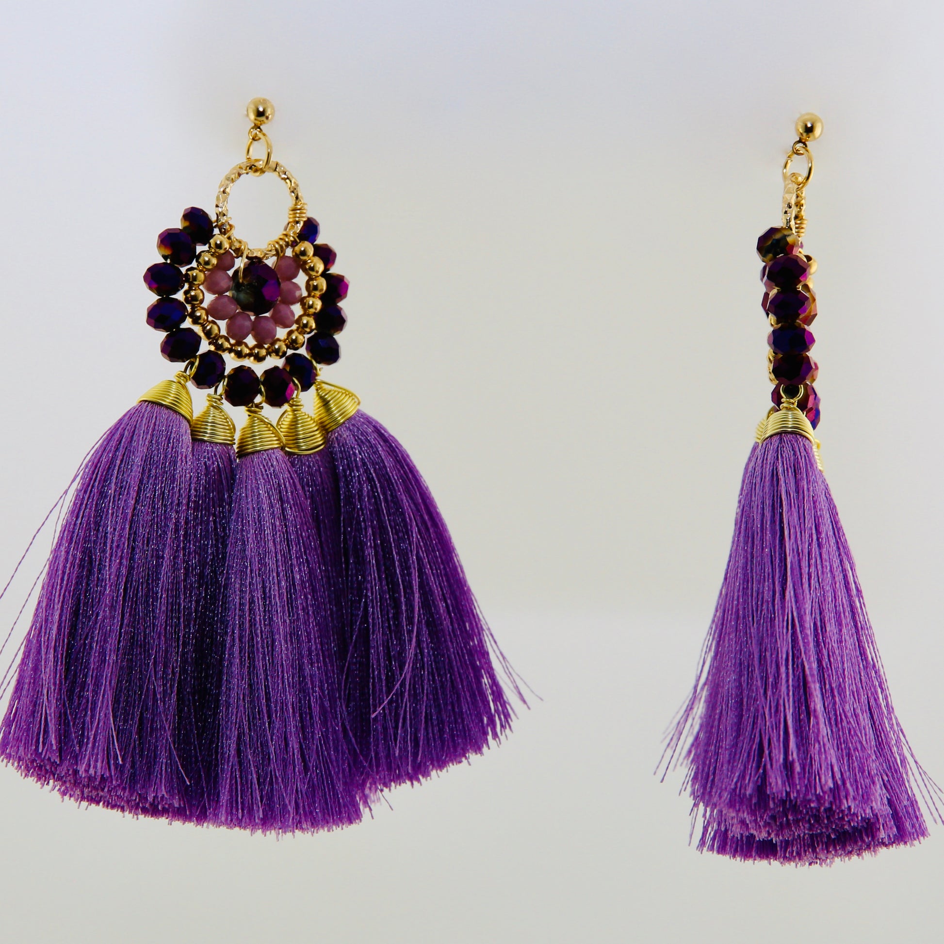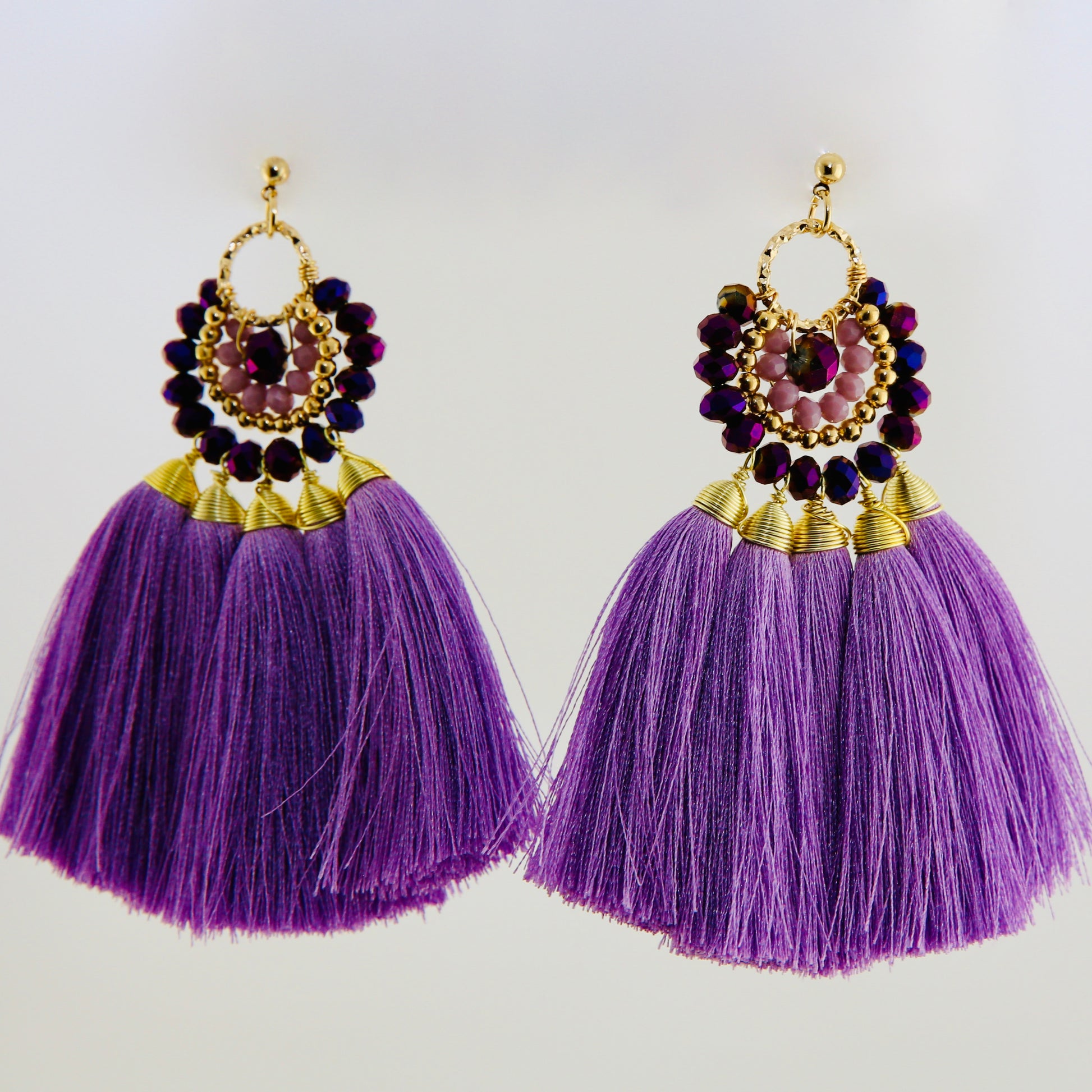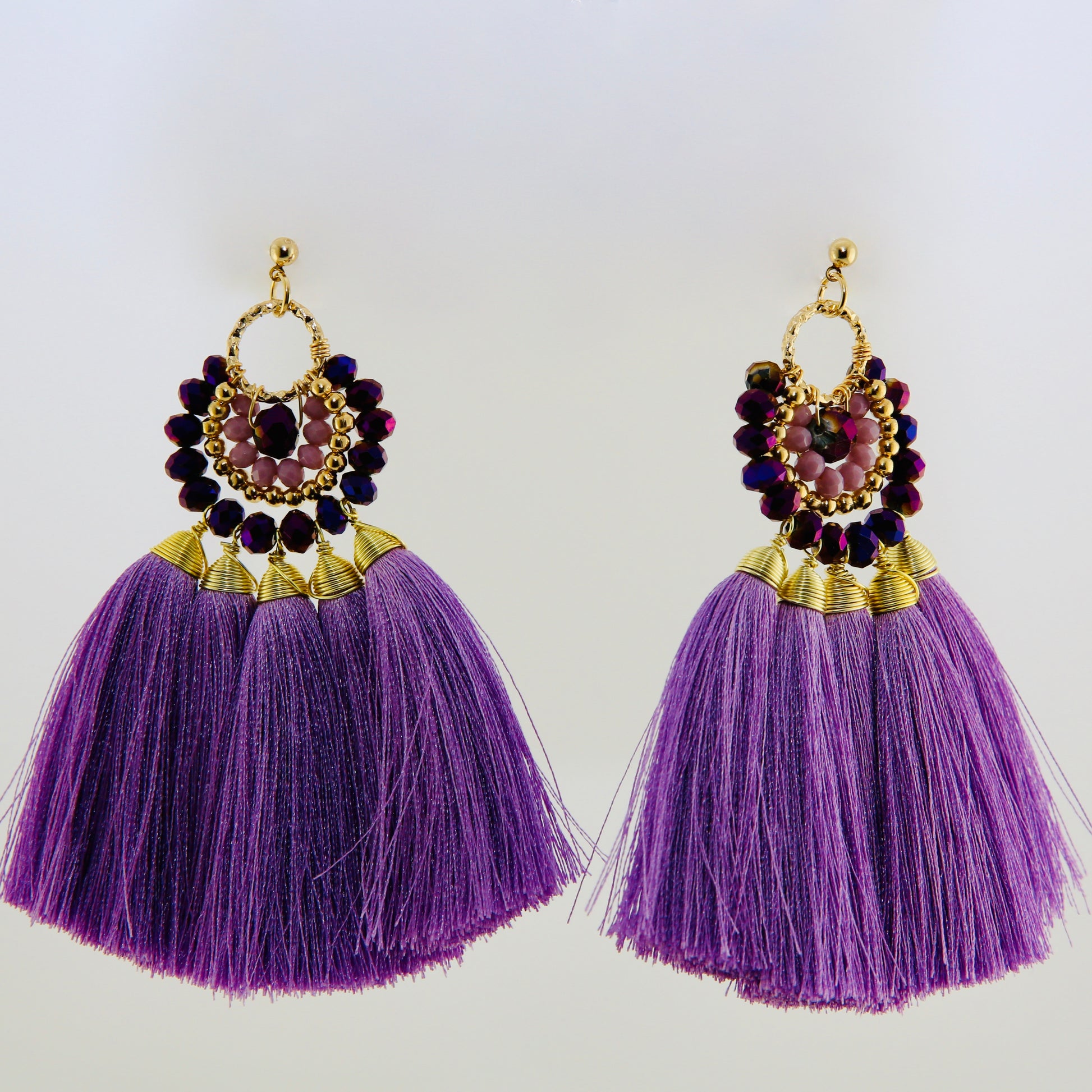 Aretes Artesanales Mexicanos de Cristal y Borla de Hilo