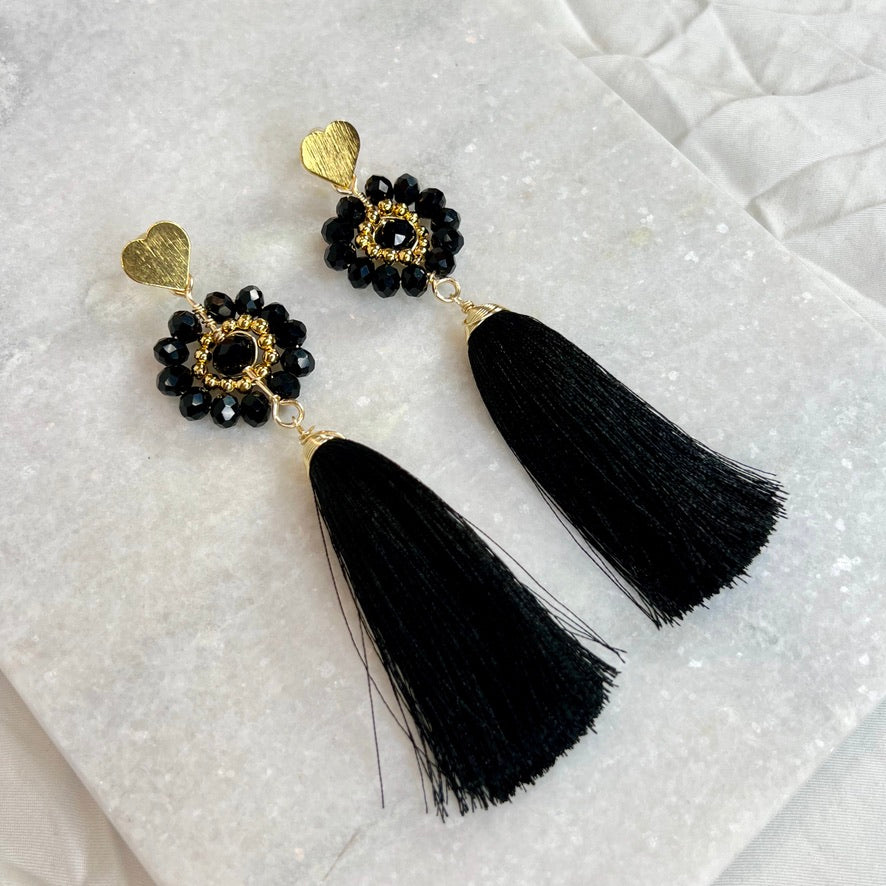 Aretes Artesanales Mexicanos de Cristal y Borla de Hilo