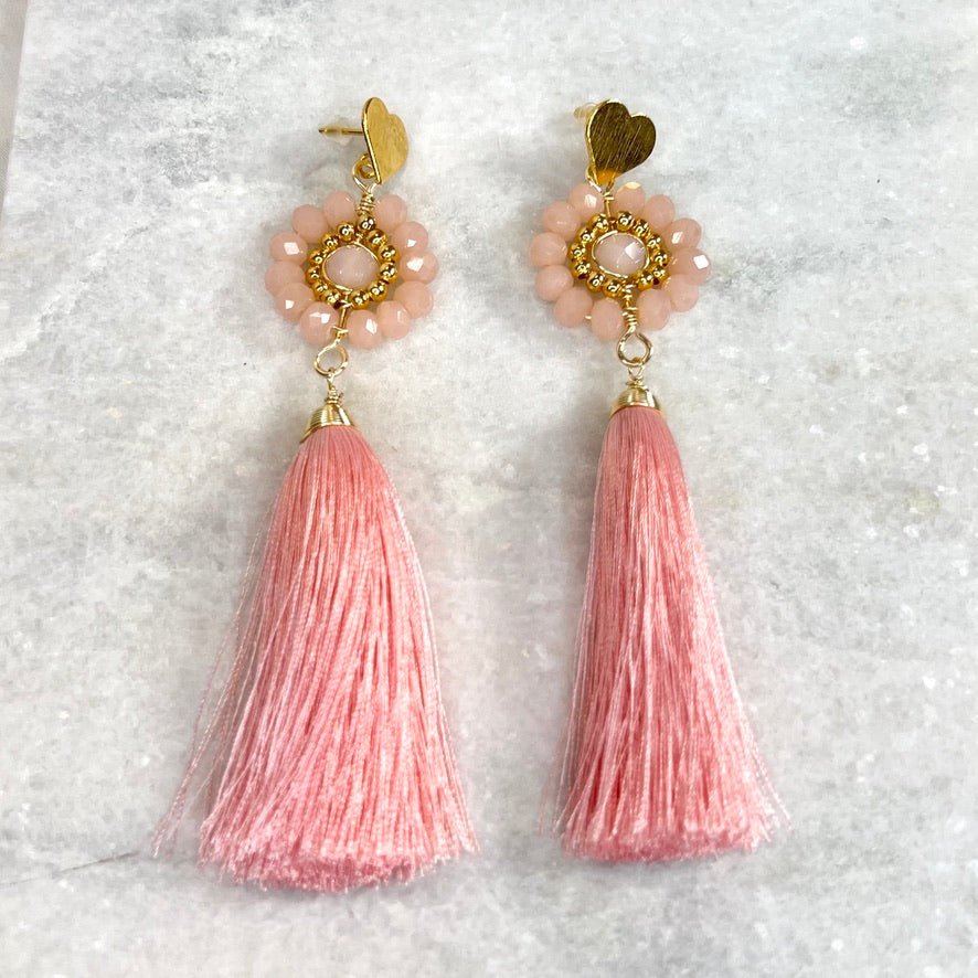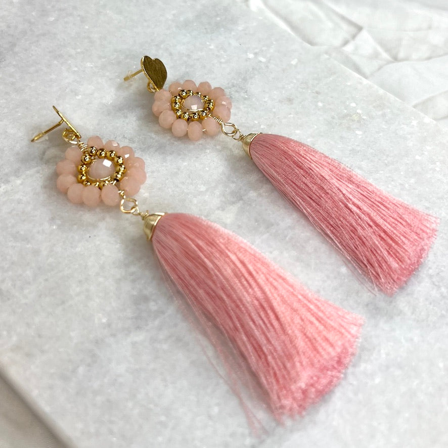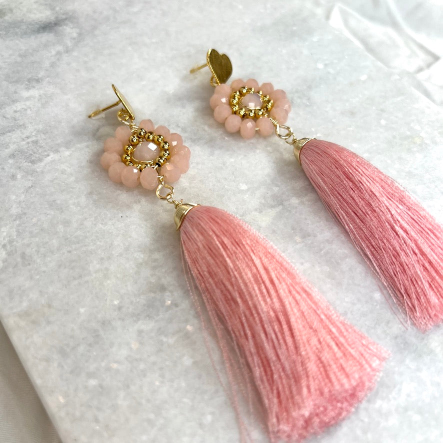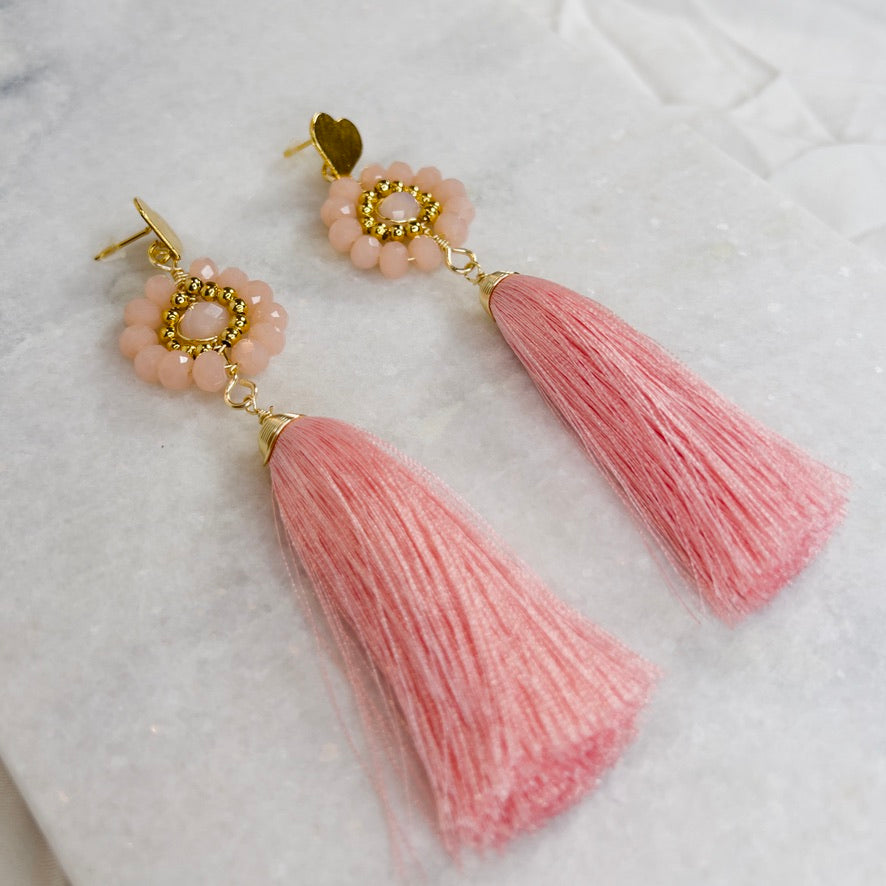 Aretes Artesanales Mexicanos de Cristal y Borla de Hilo