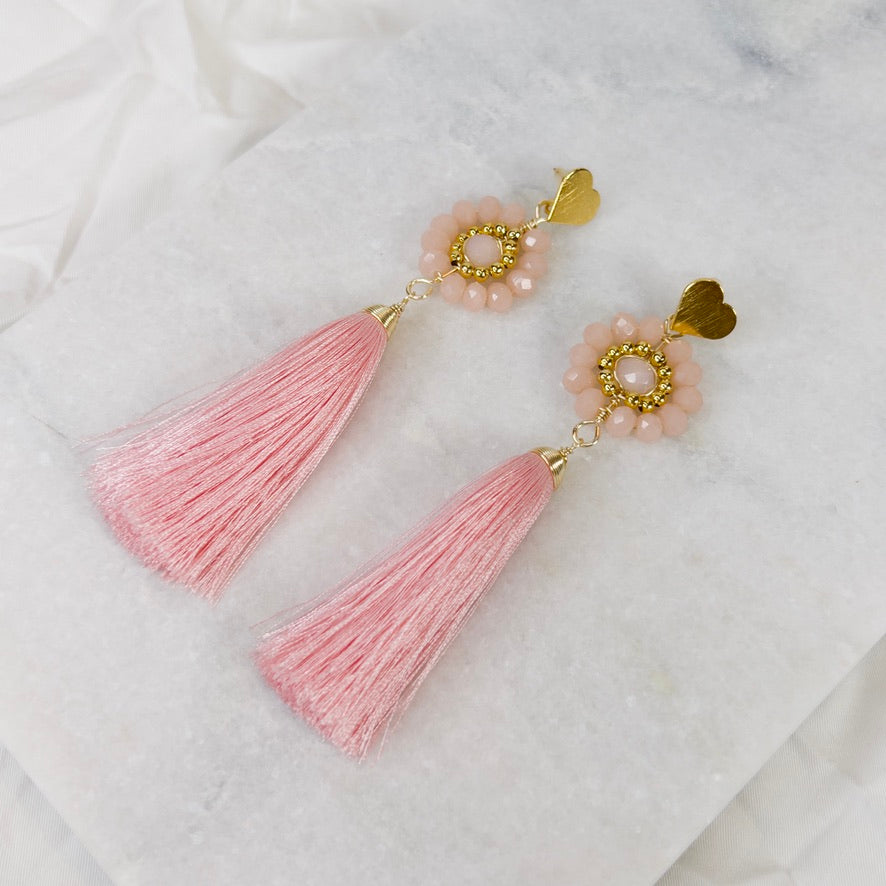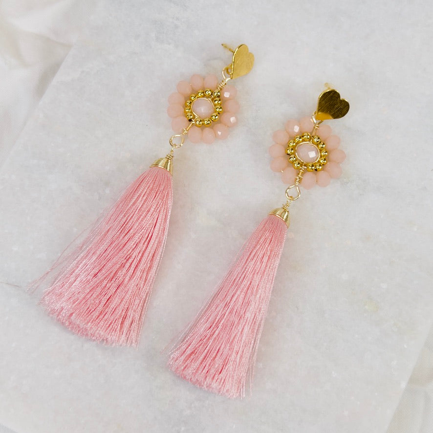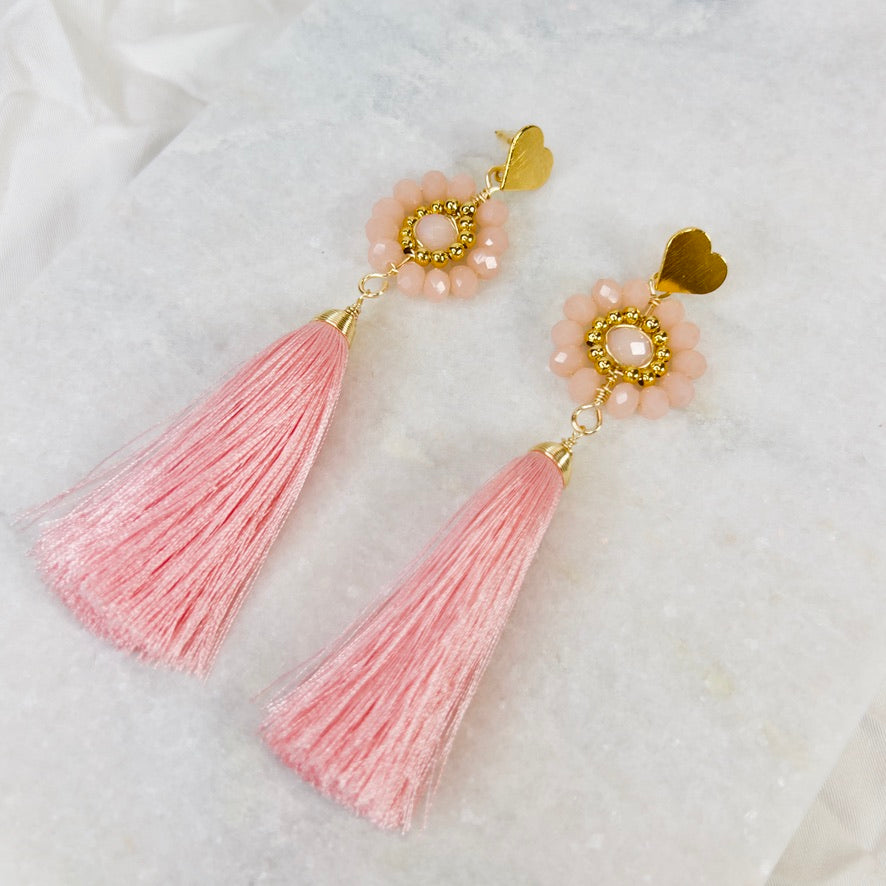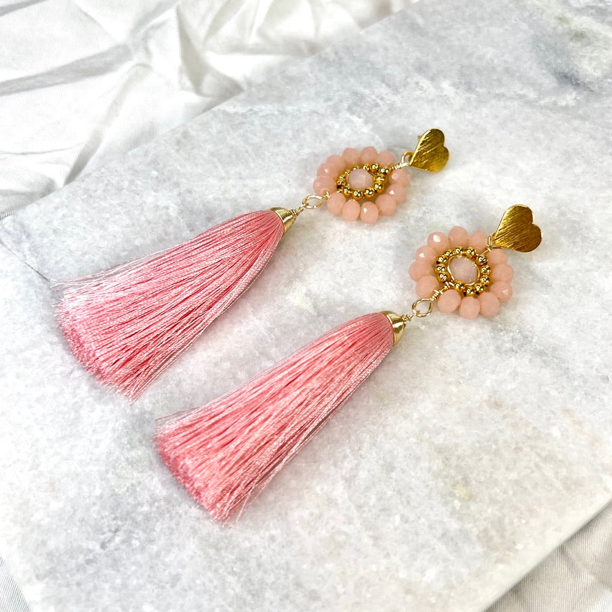 Aretes Artesanales Mexicanos de Cristal y Borla de Hilo